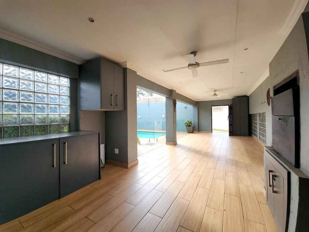 Second living area leads to a huge covered patio with a built-in braai, perfect for year-round entertaining