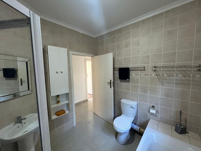 Lock and go luxury in Waterfall CBD behind Mall of Africa — fully furnished fifth floor apartment with Smeg kitchen, balcony, two en-suite bedrooms, weekly cleaning and fiber, two covered parking.