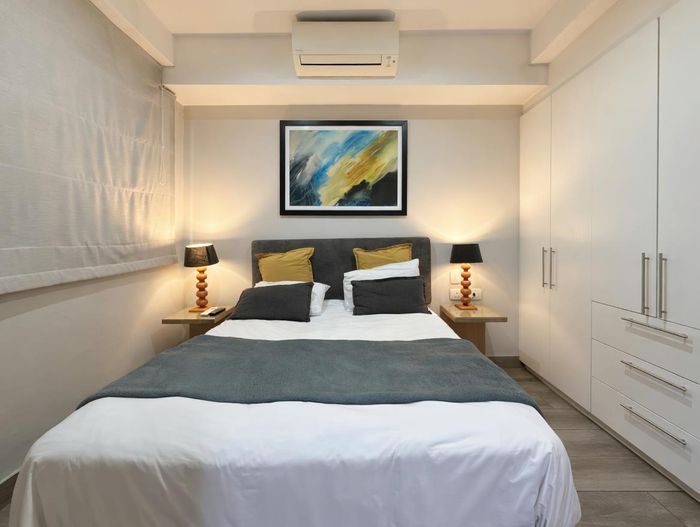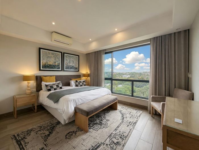 Enjoy upscale living in Sandton's heart, steps from Sandton City, Gautrain and Mediclinic. Private lift, balcony with city views; two bedrooms, 2.5 bathrooms, two parking bays.