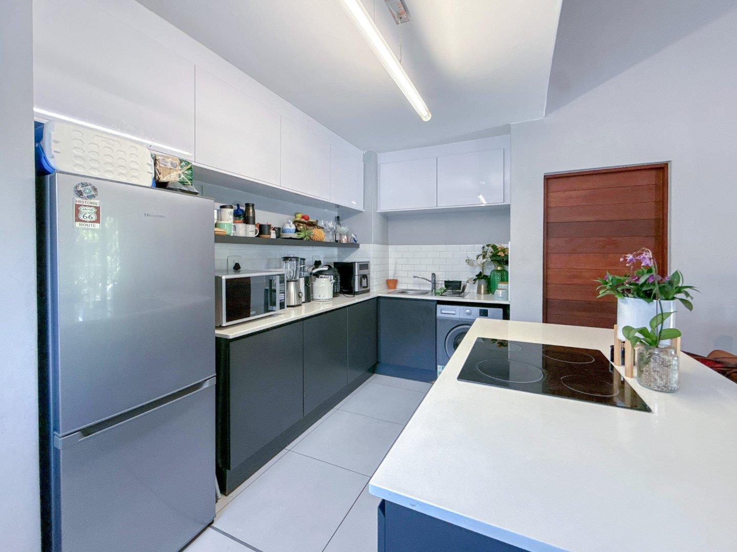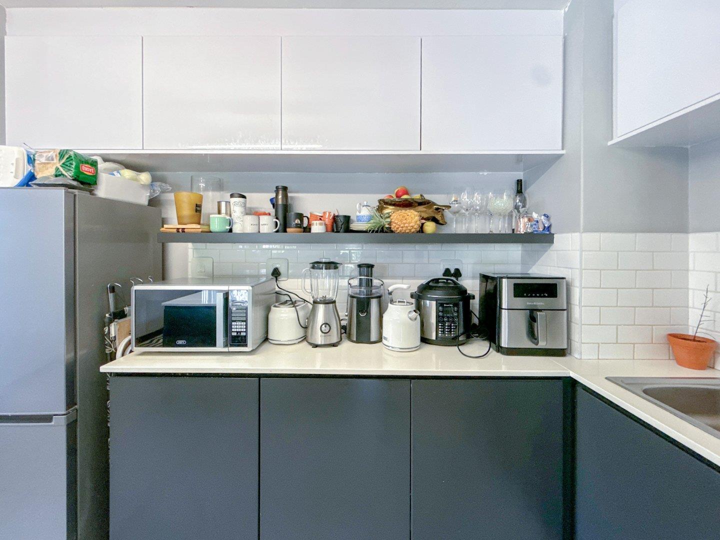 * Kitchen with space for one under-counter appliance and a single-door fridge