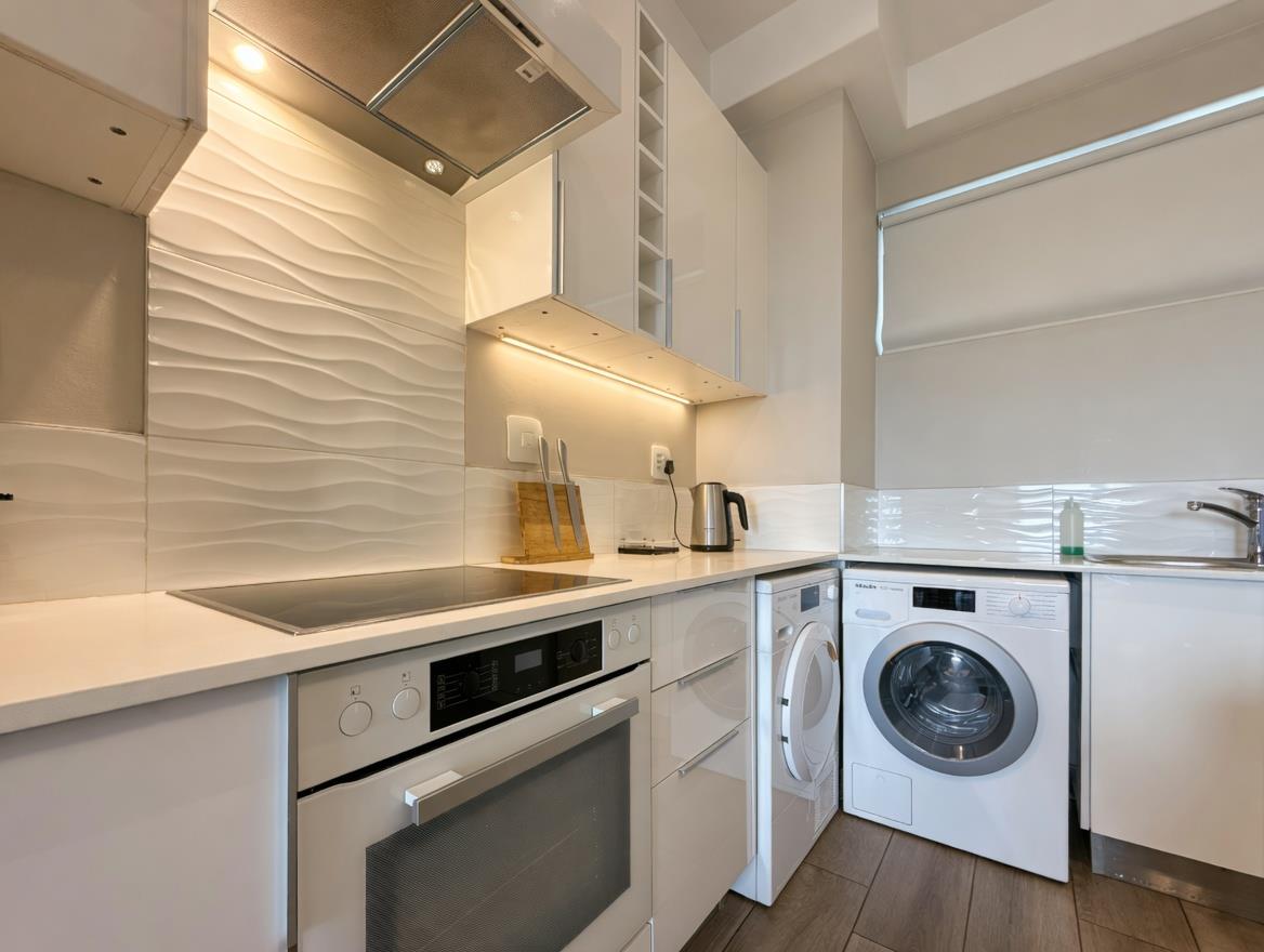 The contemporary kitchen features crisp finishes and quality appliances, while the thoughtfully designed layout allows the second bedroom and bathroom to operate completely separately when needed.