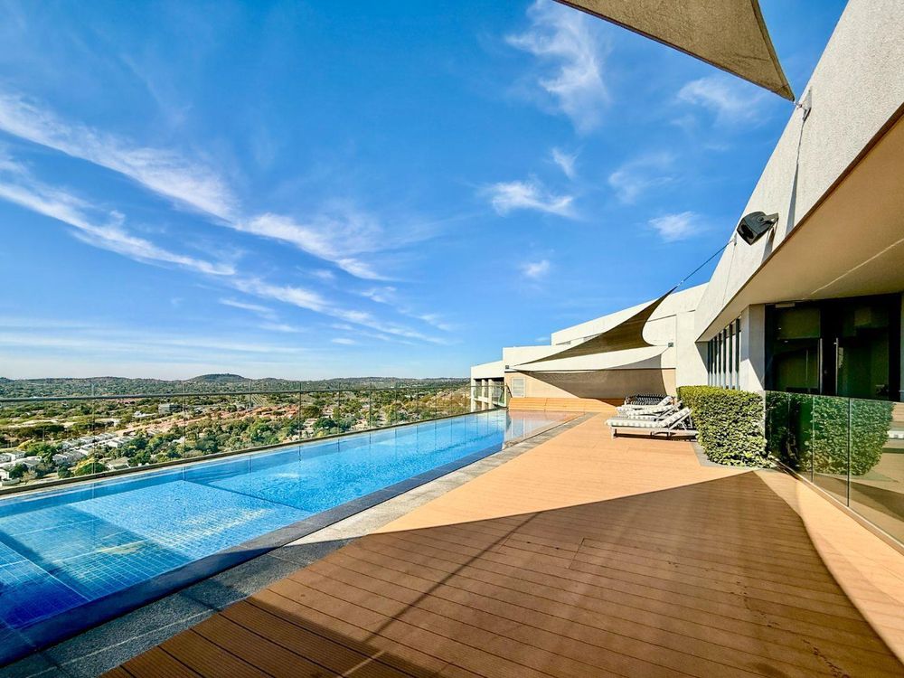 This generous unit features two large bedrooms (both with built-in wardrobes), two modern en-suite bathrooms, two separate lounges, and a bright open-plan kitchen and dining area. The apartment is fully styled with premium contemporary furniture and opens onto a private balcony offering stunning elevated views over Pretoria East.