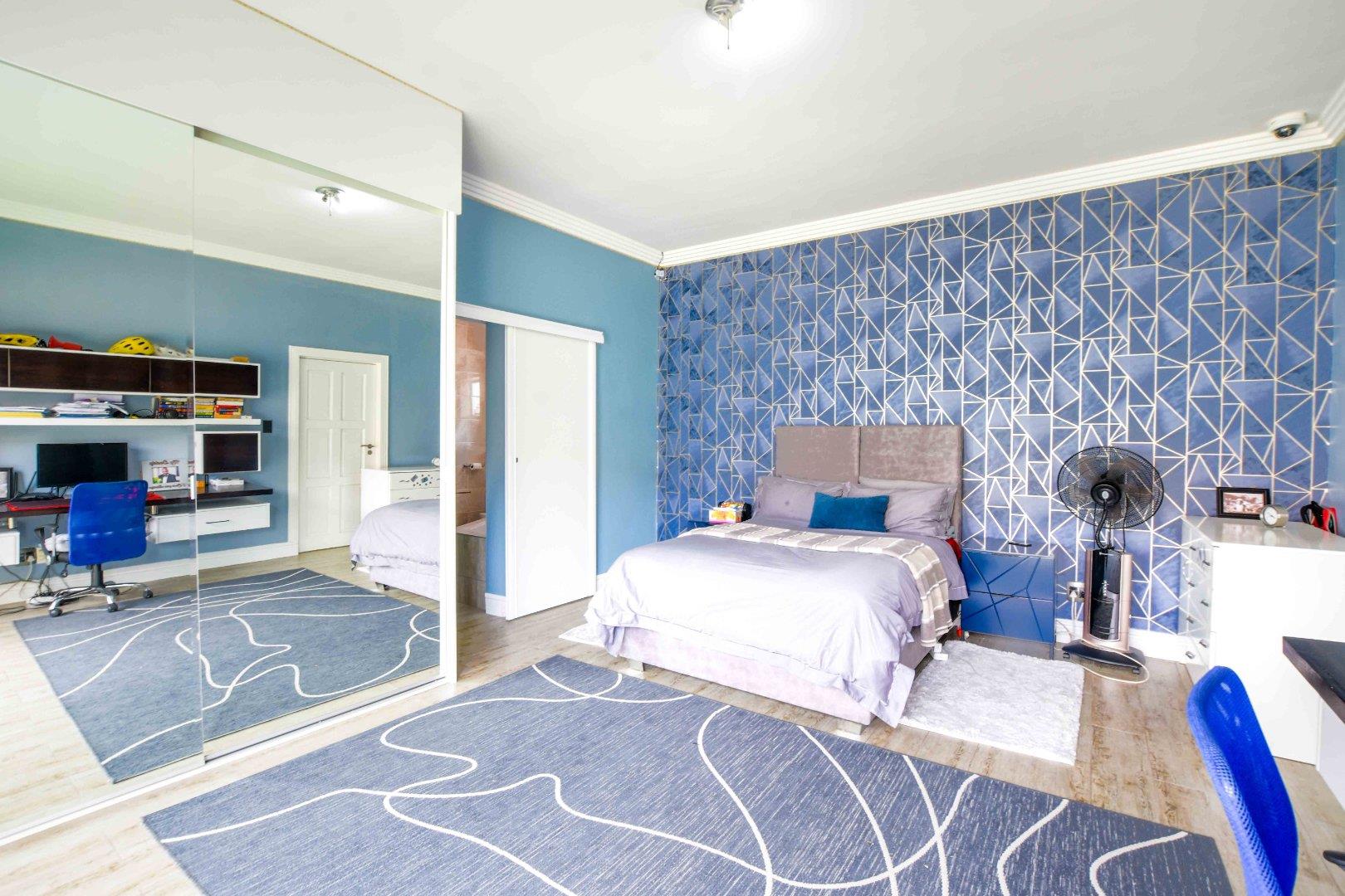 Upstairs, a world of opulence awaits. The main bedroom is a lavish retreat, complete with an adjoining study, ideal for productivity or reflection. The en-suite bathroom is a haven of relaxation, featuring high-end fixtures and finishes. A spacious walk-in closet offers a luxurious home for your wardrobe, and the upstairs lounge area provides a private retreat within the residence.