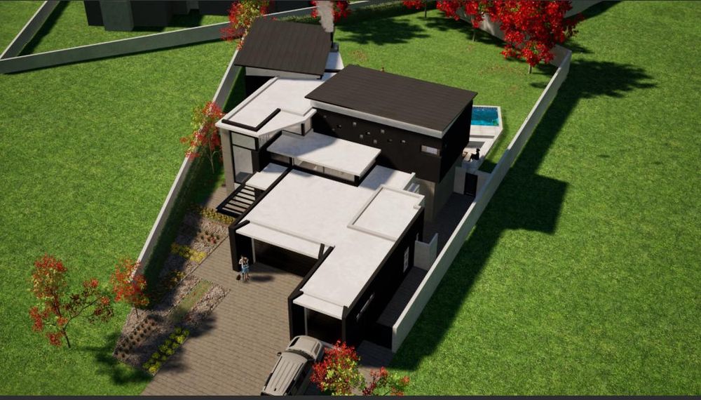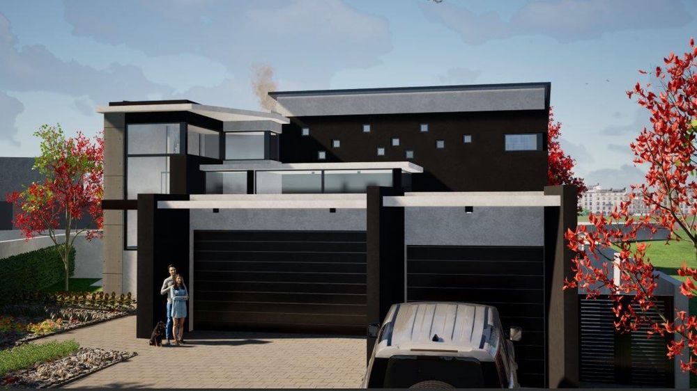 - Garages: A double garage provides direct access to the house, and an additional single garage is connected.