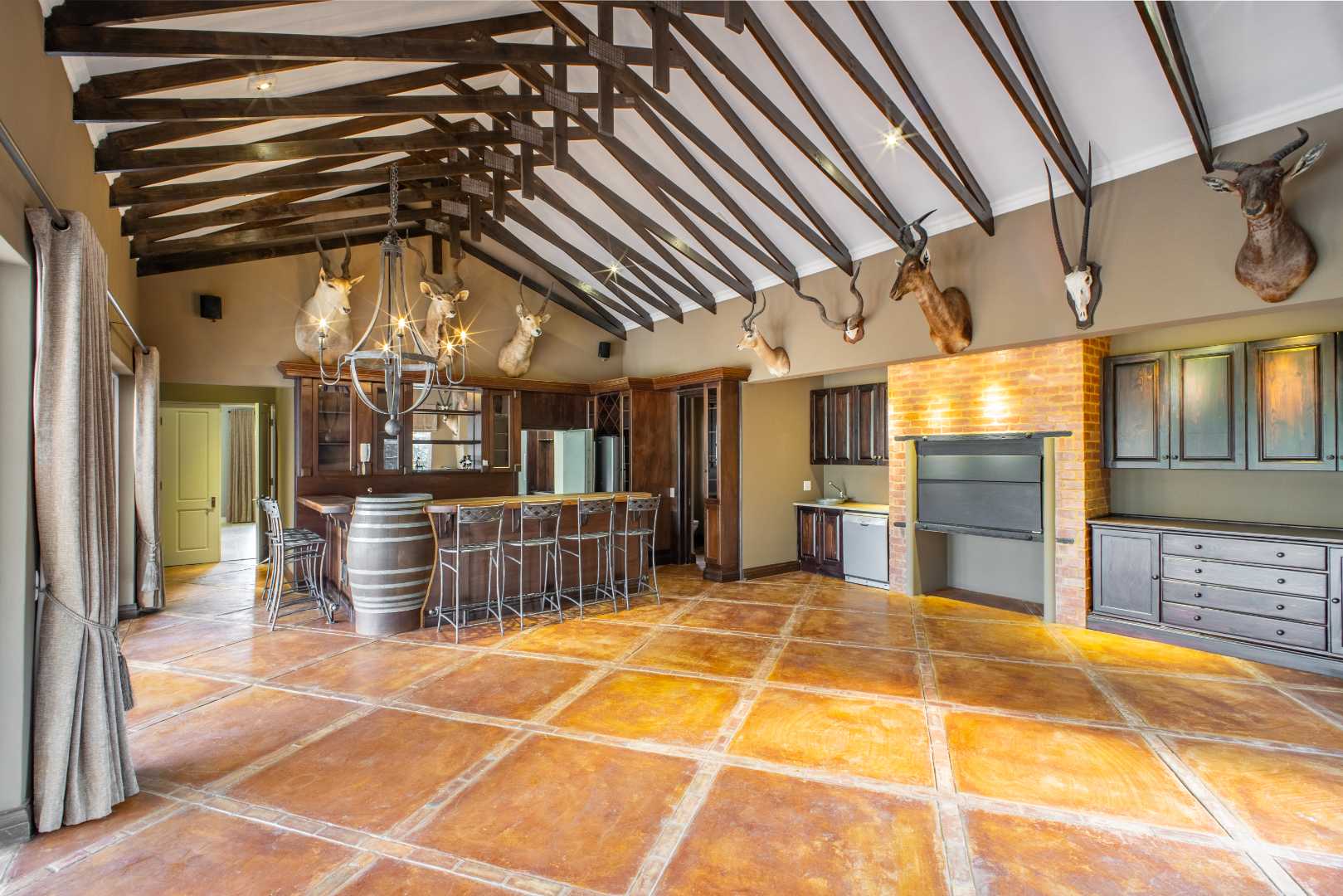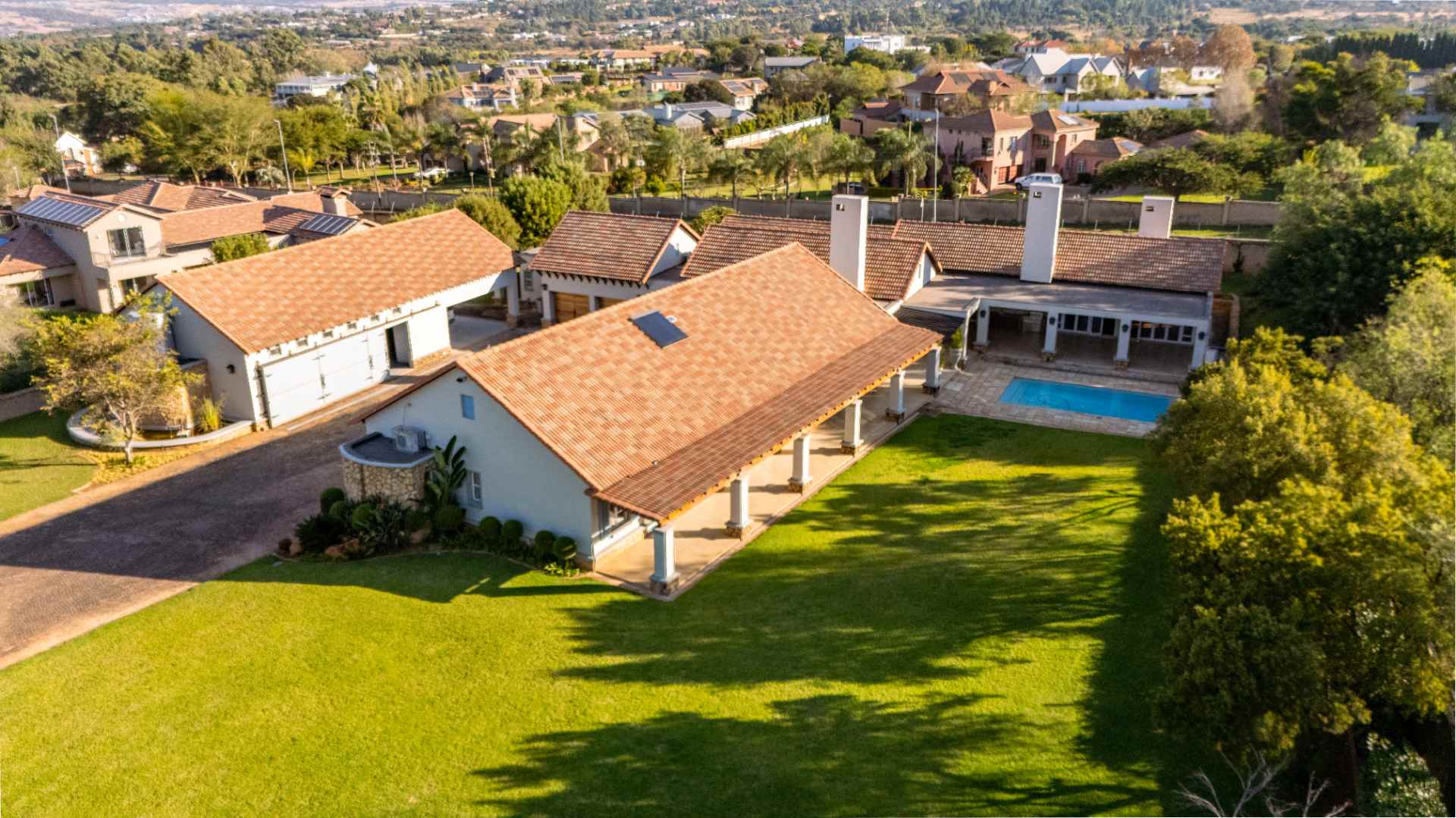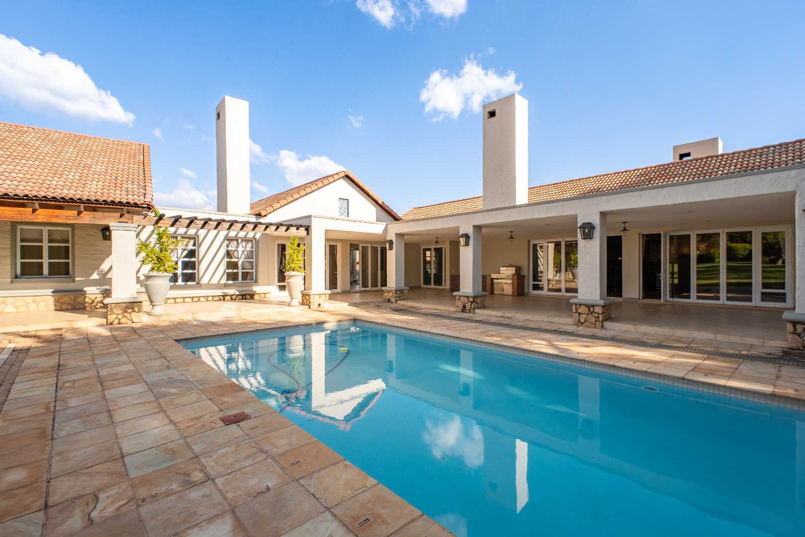From the moment you enter, you’re greeted by high-end finishes and thoughtfully designed interiors. The heart of the home is the fully equipped kitchen, complete with a scullery, pantry, and laundry area—perfect for seamless living and entertaining. A separate bar and open-plan entertainment area flow effortlessly onto a massive swimming pool, where each bedroom enjoys direct access for the ultimate resort-like feel.