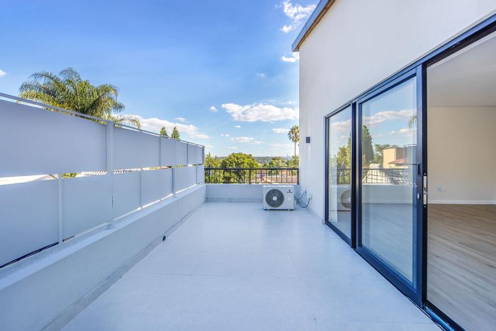 Urban convenience in Bryanston with bright modern living, private balcony and estate swimming pool — steps from Nicolway, top schools and minutes to Sandton CBD; two bedrooms, one bath.