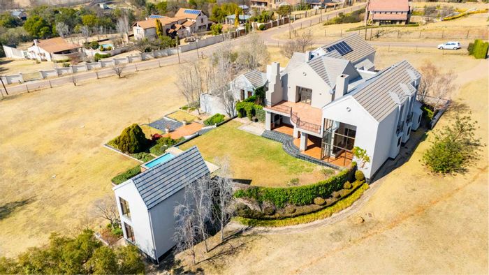 Entertain on a lush 1-hectare plot in prestigious Mooikloof Equestrian Estate, with pool, private tennis court and unique underground wine cellar — four bedrooms, four baths.