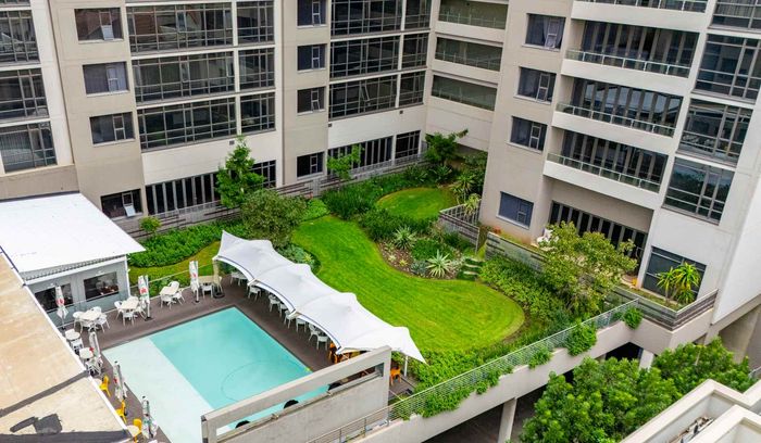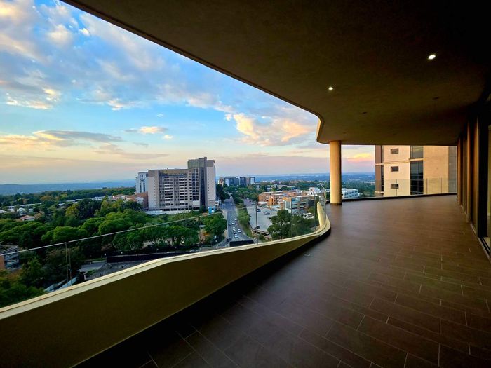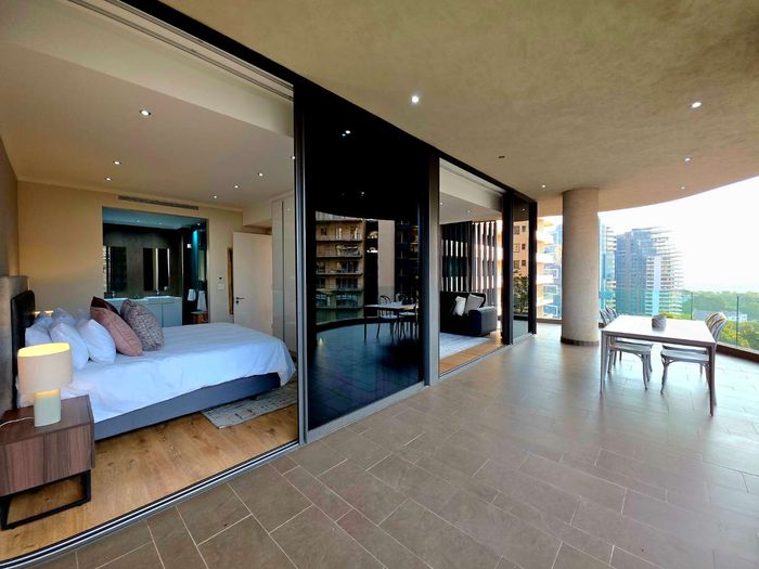 Executive urban living in Atholl, minutes from Sandton CBD and Melrose Arch, with three level triplex layout, rooftop views, double-volume lounge and balcony — two bedrooms, 2.5 bathrooms, double garage.