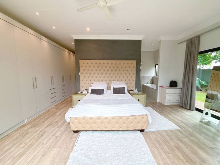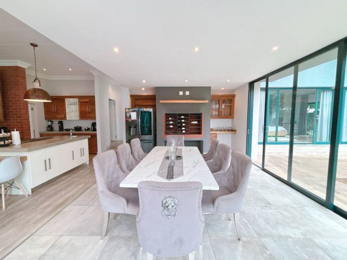 Resort-style Brooklands Estate living: chef's kitchen (inbuilt coffee machine, scullery), cinema opening to three balconies, covered patio with inbuilt braai and pool — 4 beds, 4 baths, 4 garages.