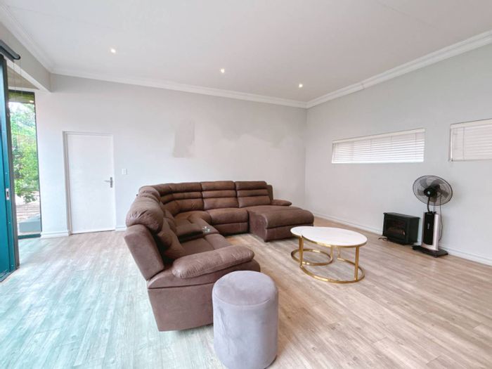 Family-focused living in a secure estate with seamless indoor–outdoor entertaining and a landscaped garden for summer braais; five bedrooms and a double garage.