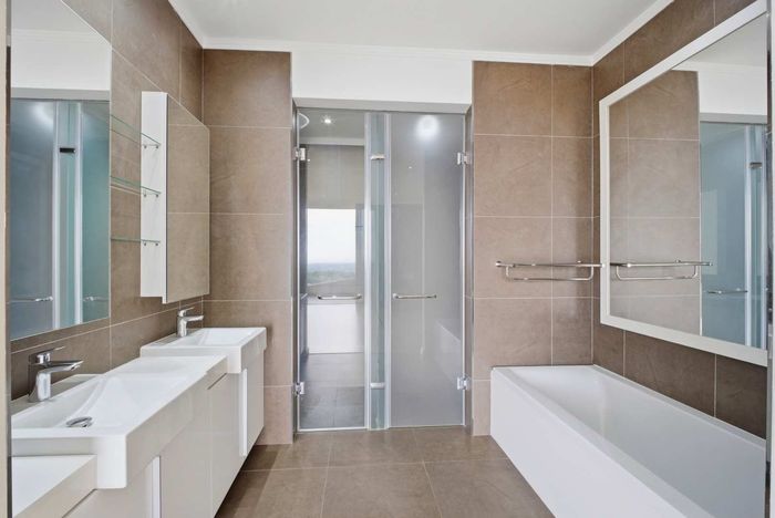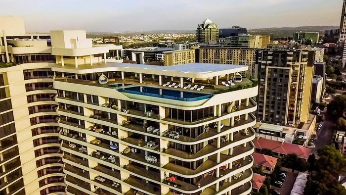 Enjoy Sandton's vibrant lifestyle, walking distance to Gautrain and Sandton City; 9th-floor three-bedroom apartment with panoramic northern views, designer kitchen, deep balcony and 25m sky-deck pool.