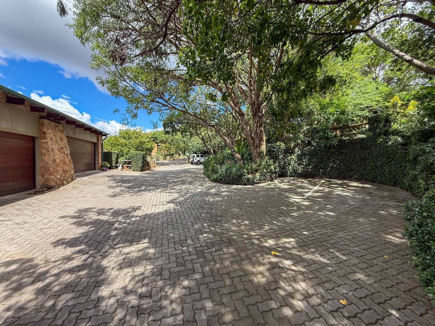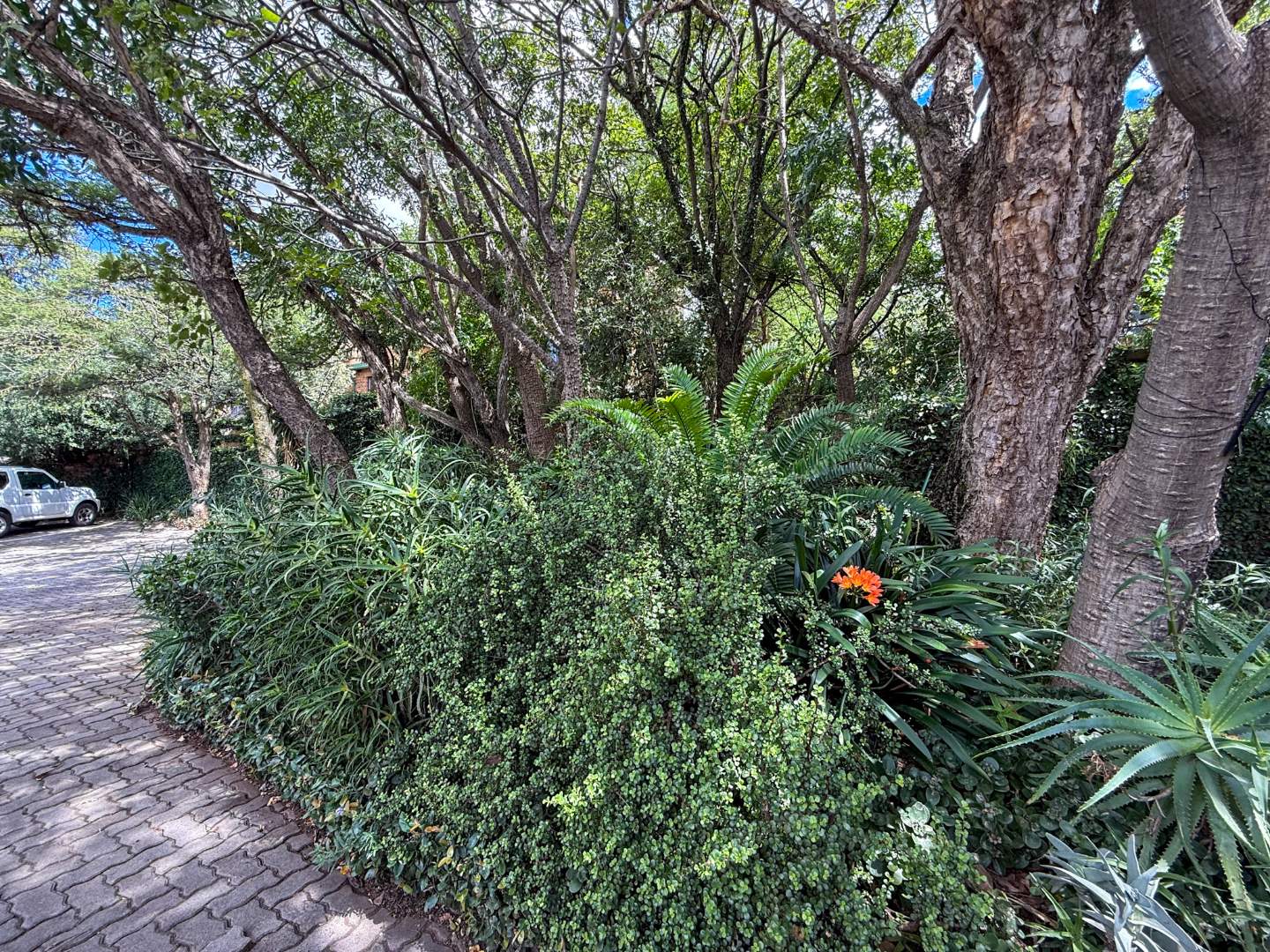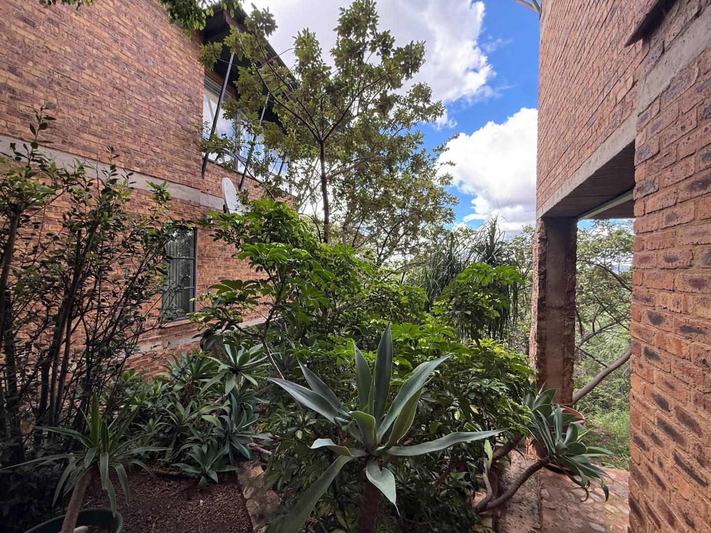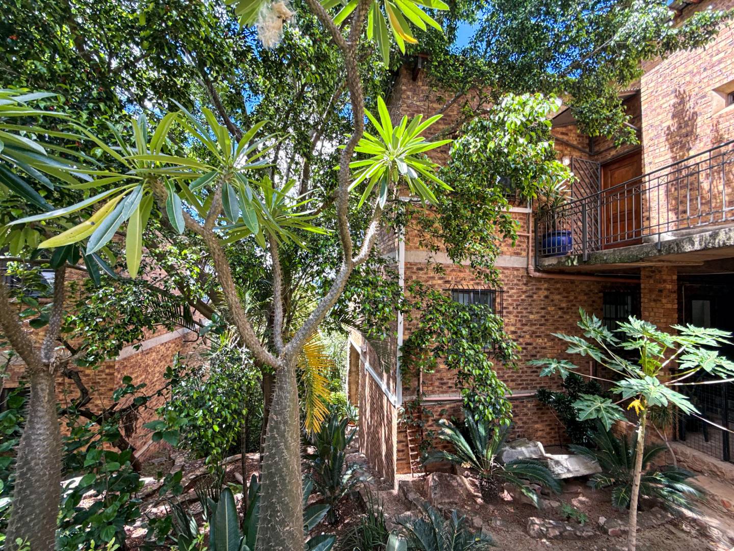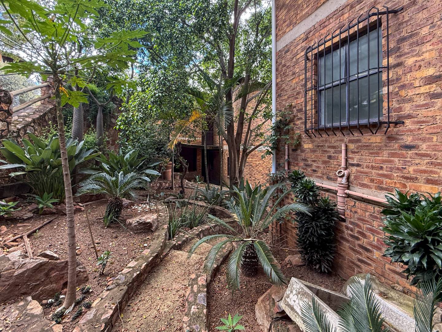 Covered garden & bushveld-style walkways: winding down through lush greenery to the third-level entertainment area.