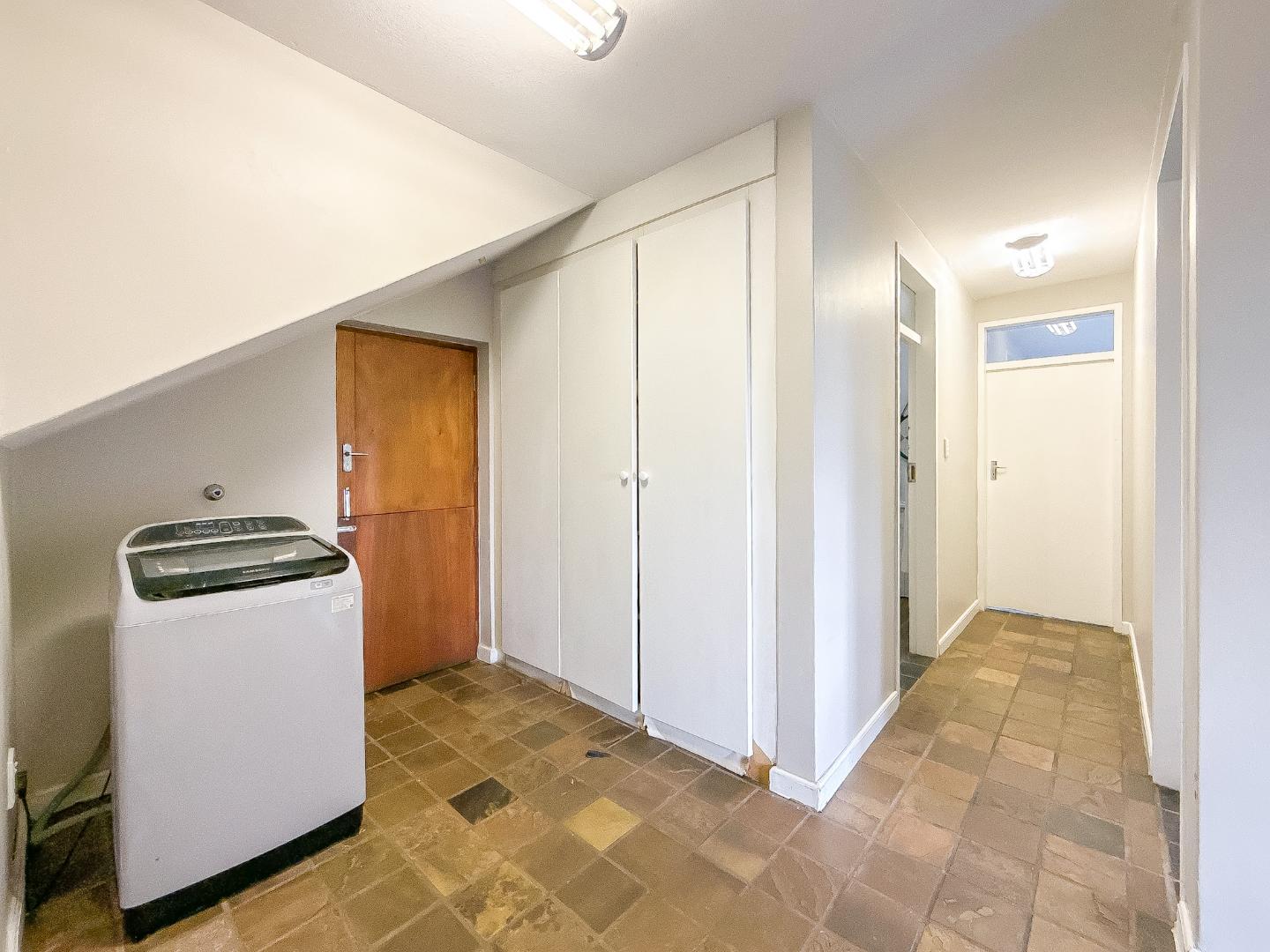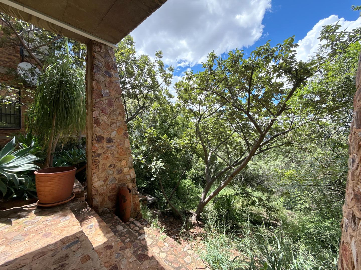 Meandering garden pathways lead through a lush, bushveld-inspired setting to a secluded entertainment area, ideal for unwinding in complete privacy. A large storeroom on this level adds valuable functionality without compromising the home’s clean, considered design.