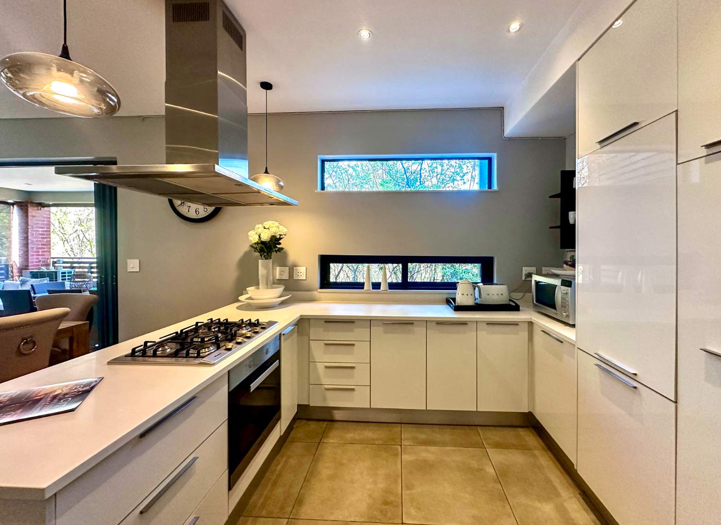 Enjoy no fuss luxury living in this gorgeous 3 bed 2 bath apartment. Located at Oasis Steyn City, this apartment comes complete with integrated Miele washer/dryer, fridge/freezer and dishwasher. The Miele hob is gas and the oven is electric.