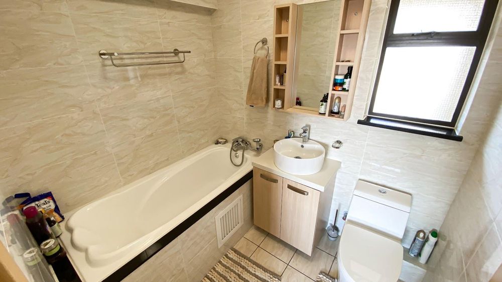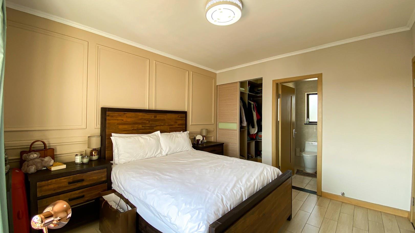 Featuring two spacious, north-facing bedrooms, each with its own en-suite bathroom, this apartment offers ultimate convenience and privacy. The main en-suite includes a relaxing bathtub, while the second boasts a sleek shower. Both bedrooms are complemented by walk-in closets and elegant wall paneling.