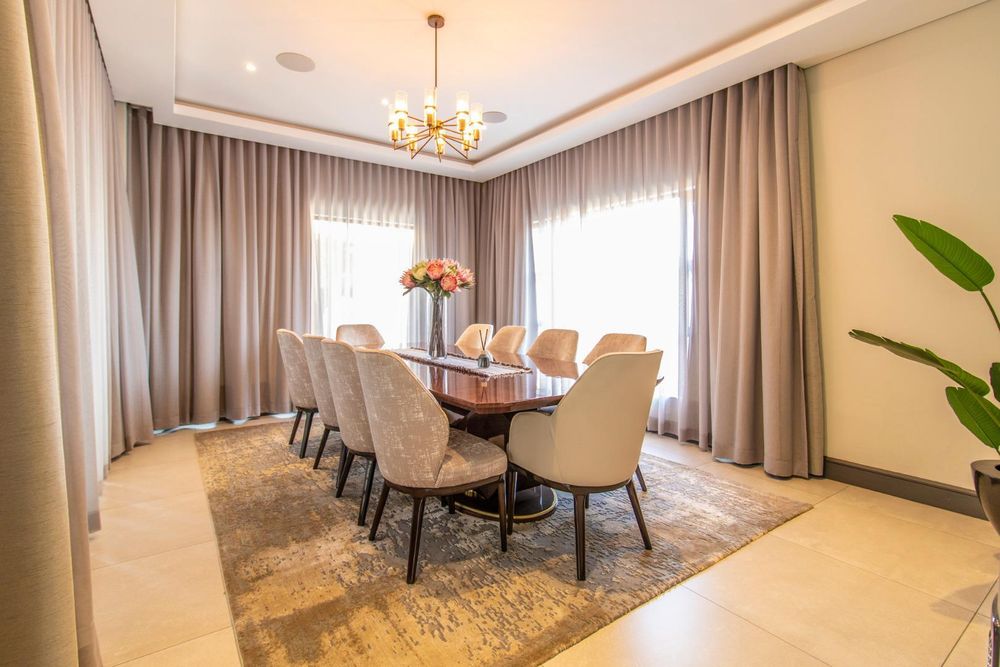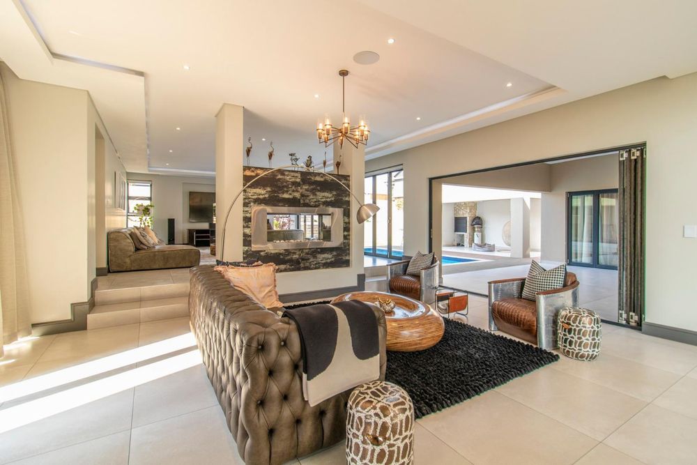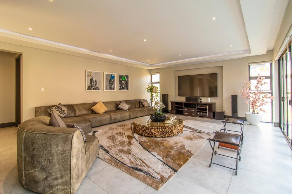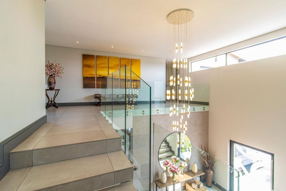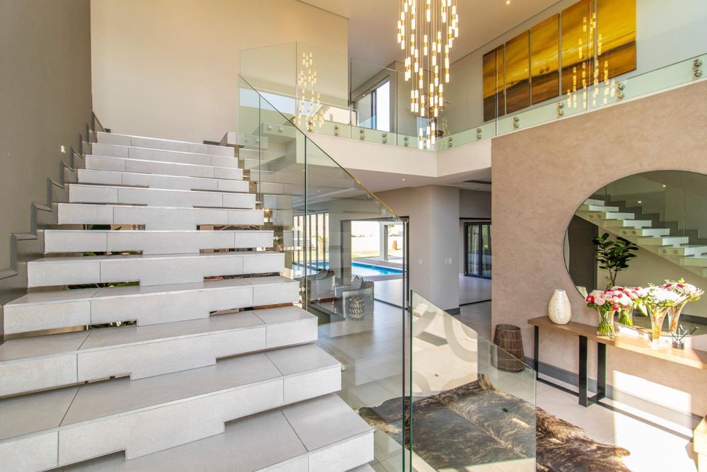 The house welcomes you with a double volume entrance hall leading to the massive kitchen and formal dining area on the right, cinema or gym room to the left and family rooms straight ahead, heated with gas fireplace. The 5th bedroom is situated on the ground floor, the rest of the bedrooms are upstairs together with a private pyjama lounge.