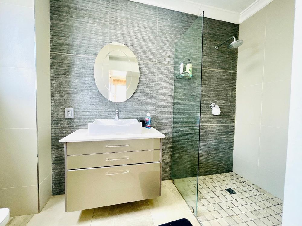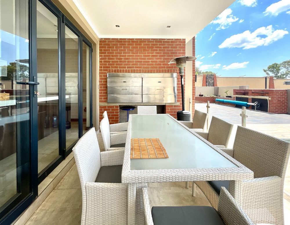 Your down stairs area also offers a built in and stack doors that open up to a covered patio with a built in braai which overlooks your garden and swimming pool, and another deck with another braai area.