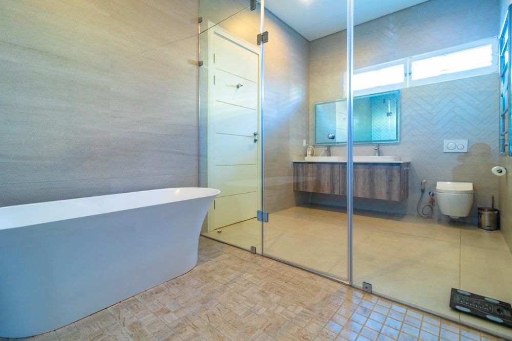 Three massive balconies, matching the size of the ground floor patio, invite you to savor the stunning views and create unforgettable memories. Antibacterial seats add a touch of refinement and hygiene, ensuring comfort at every turn. Additionally, three solar geysers contribute to the home's energy efficiency.