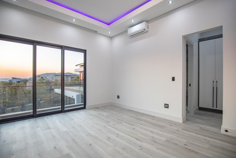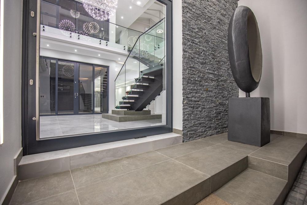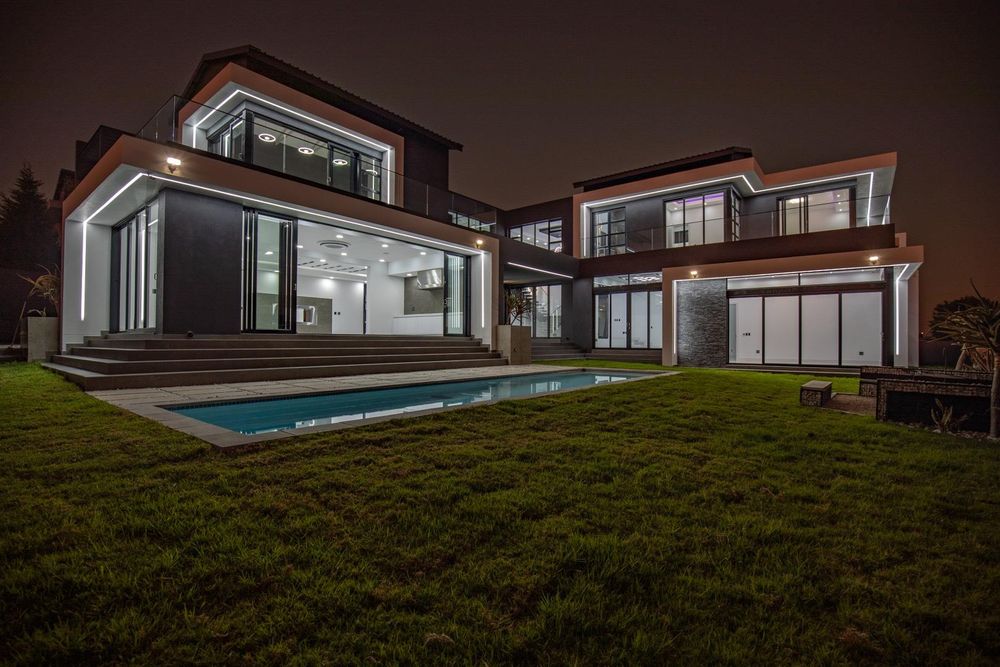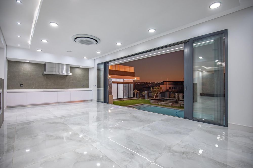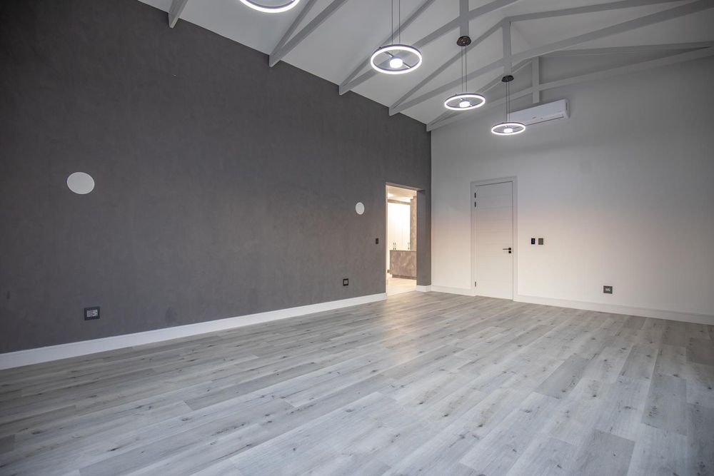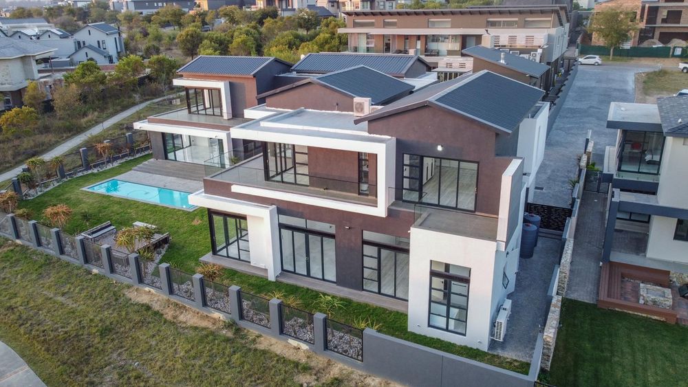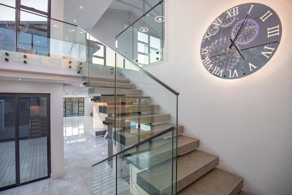 Functionality is prioritized with a borehole complete with storage tanks and a purification system supplying water for the entire house. A Control4 home automation system manages security, lighting, and entertainment, complemented by a state-of-the-art security setup with 12 Wi-Fi cameras and an alarm system. Backup power is ensured with 4.5kW solar panels and an 8kW inverter for peace of mind.