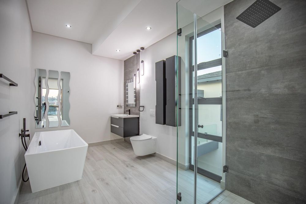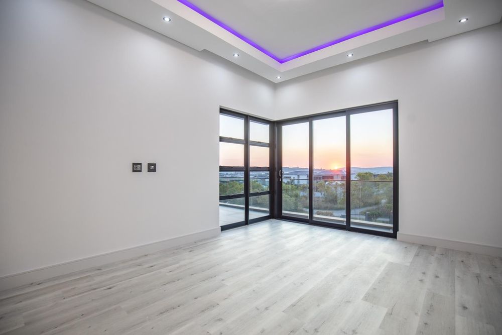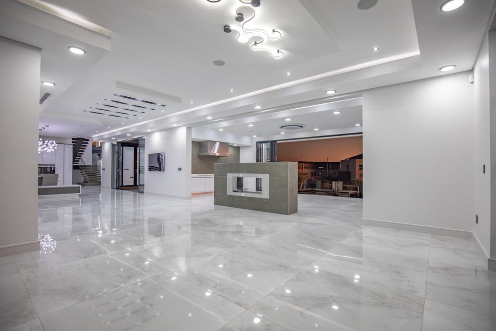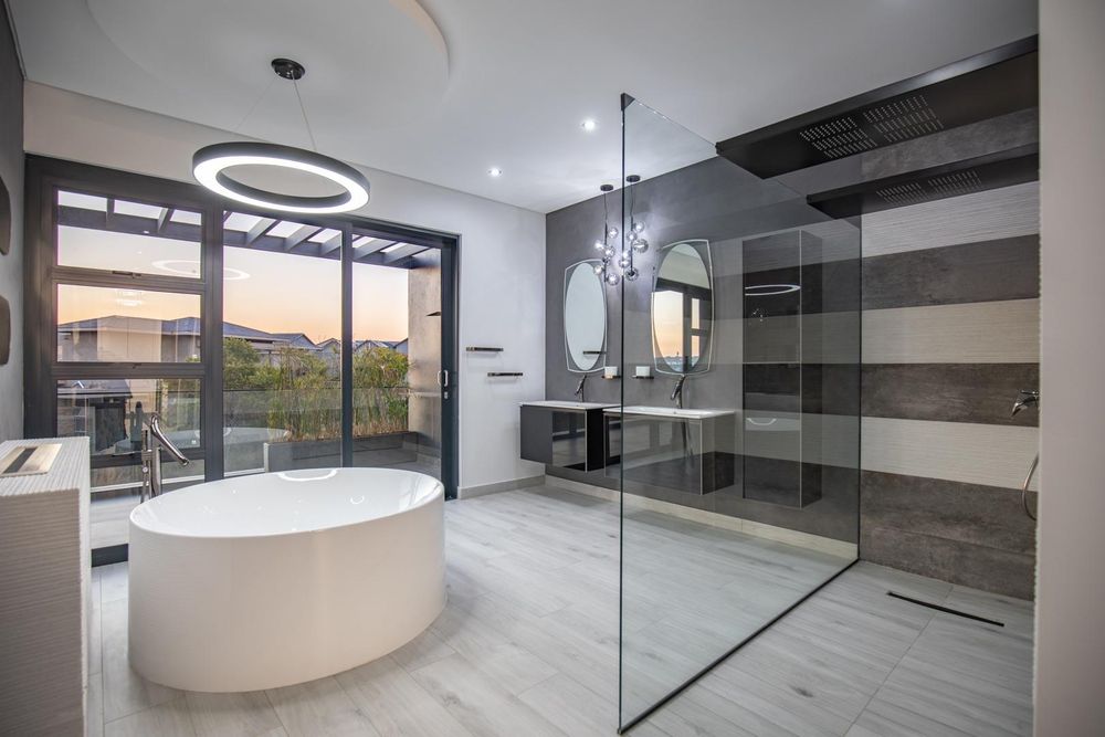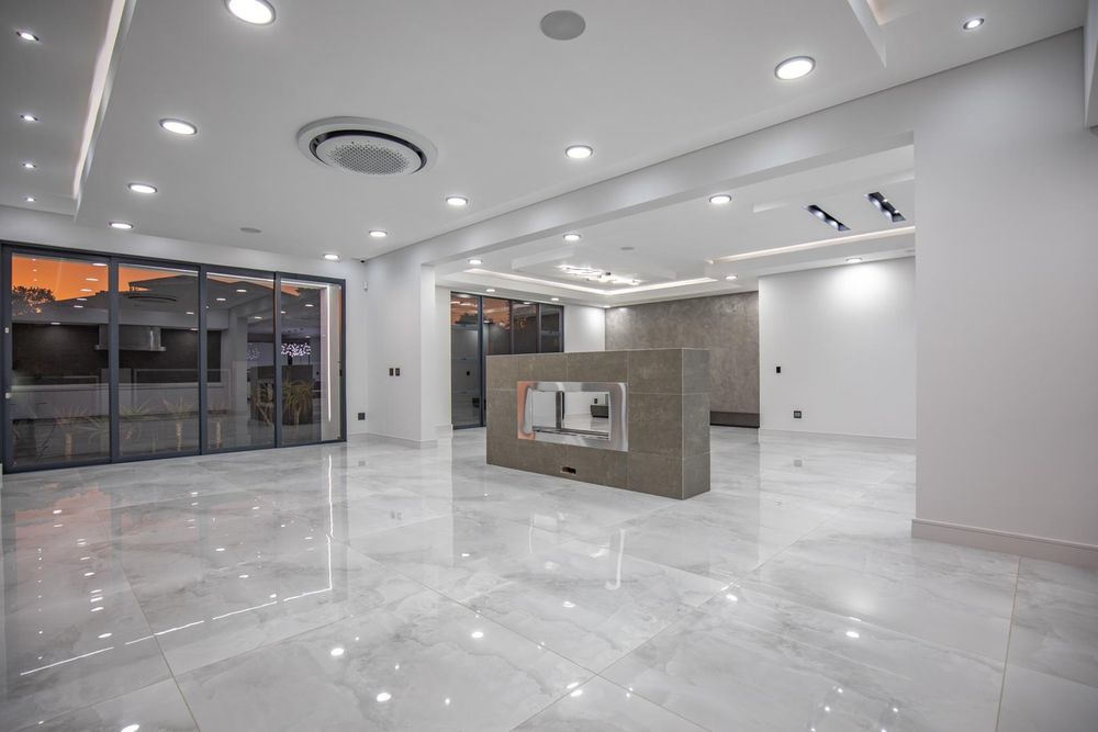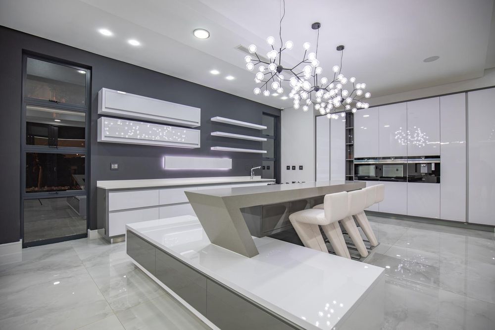 Functionality is prioritized with a borehole complete with storage tanks and a purification system supplying water for the entire house. A Control4 home automation system manages security, lighting, and entertainment, complemented by a state-of-the-art security setup with 12 Wi-Fi cameras and an alarm system. Backup power is ensured with 4.5kW solar panels and an 8kW inverter for peace of mind.