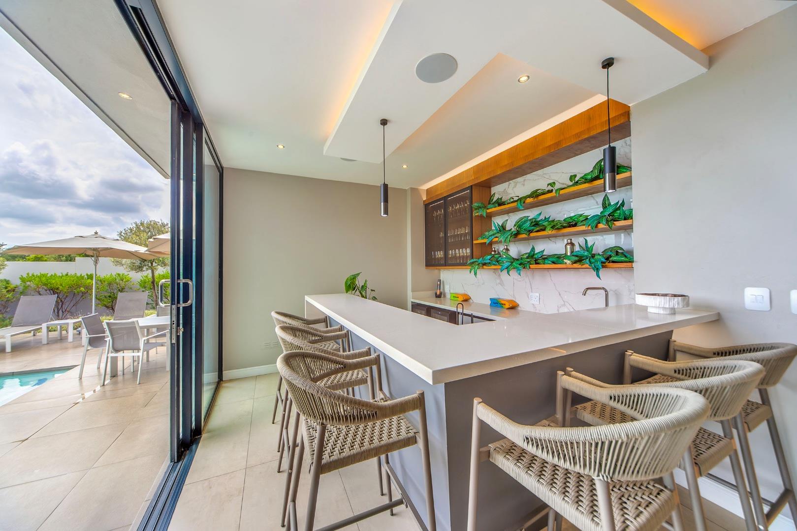 A built-in bar with doors extends the entertainment space even further, opening onto the sparkling pool, boma seating area, and a spacious, private garden designed for both relaxation and gatherings.