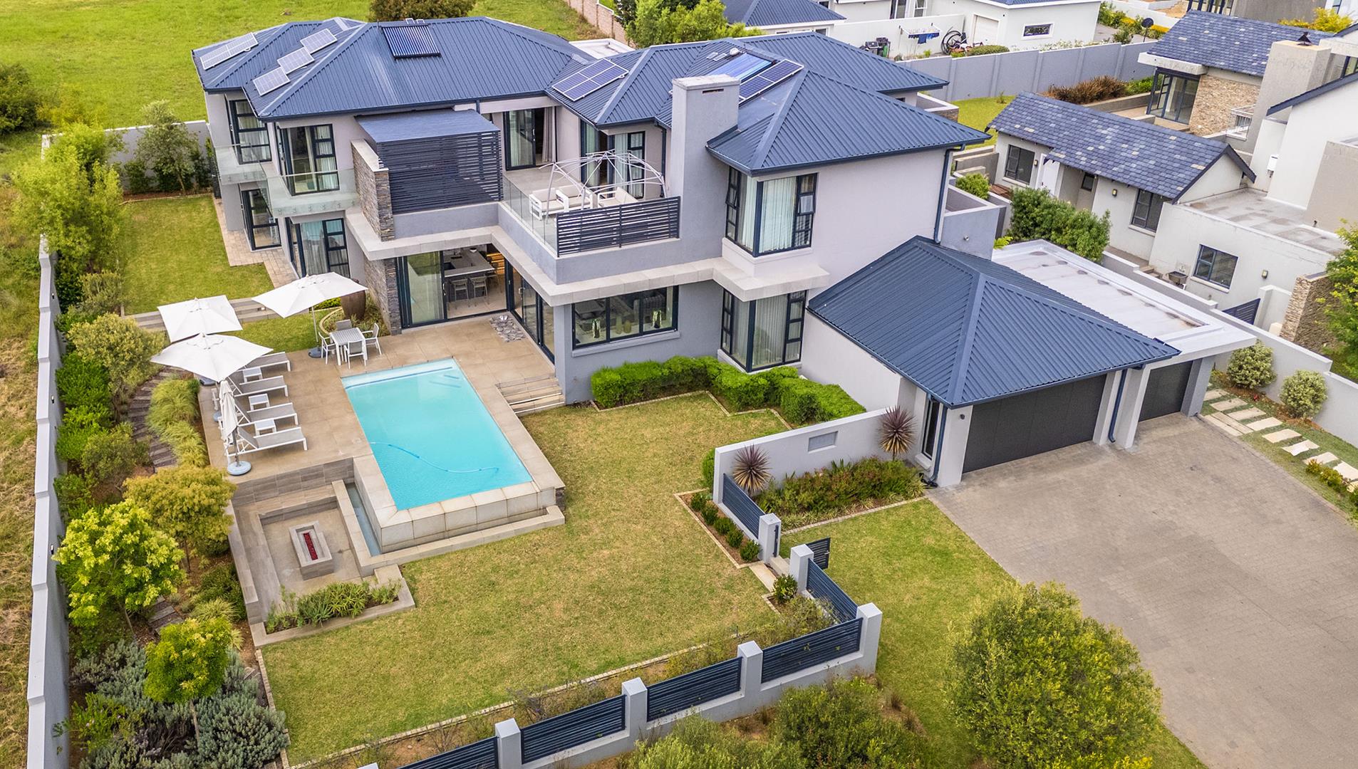 Set in a quiet private street in Waterfall Country Estate Gate 2, this exceptional residence offers the feeling of a secluded oasis, with generous space in front of the home creating both privacy and presence from the moment you arrive.