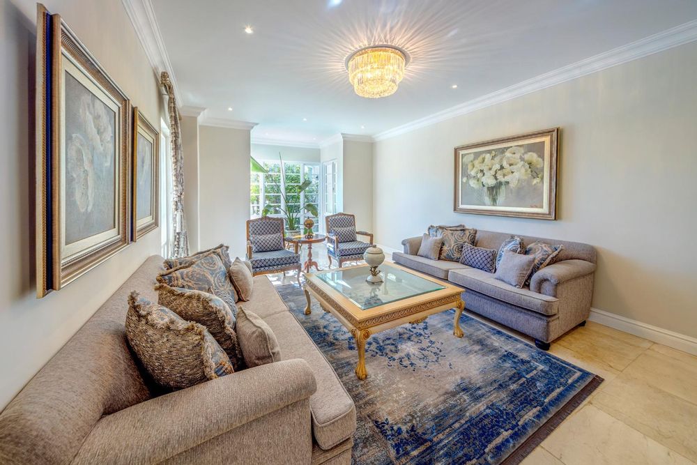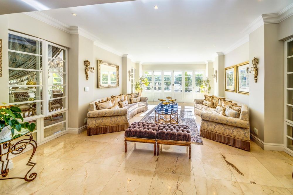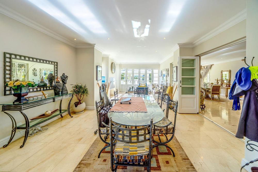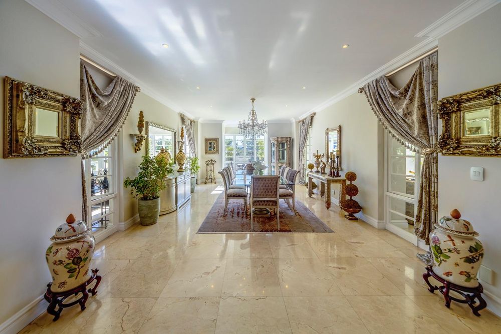 The formal living spaces include two elegant lounges; one with a gas fireplace, perfect for cozy evenings, and another that opens up to the beautifully garden, providing a seamless indoor-outdoor living experience. The dining room is ideal for hosting dinner parties and gatherings.