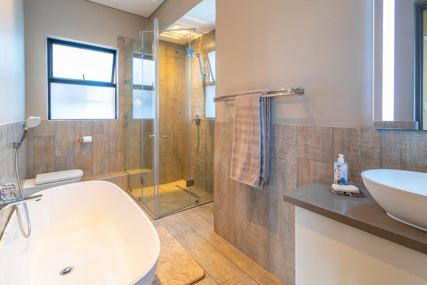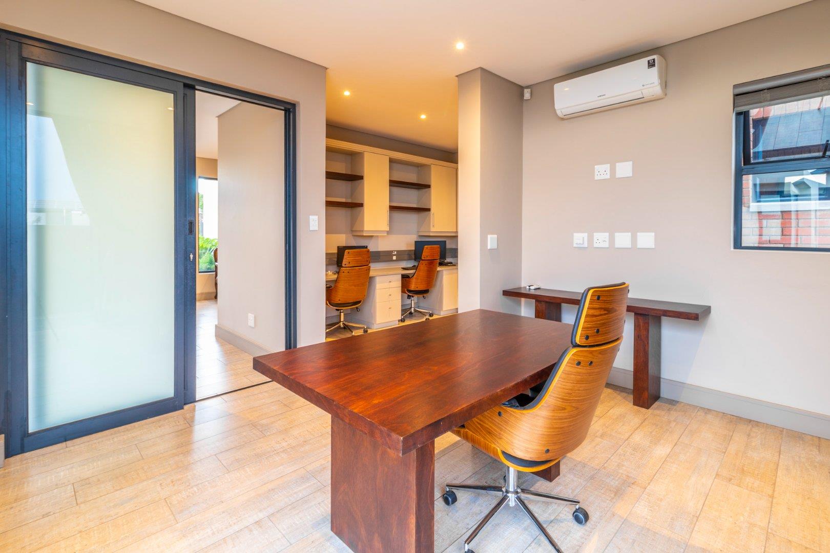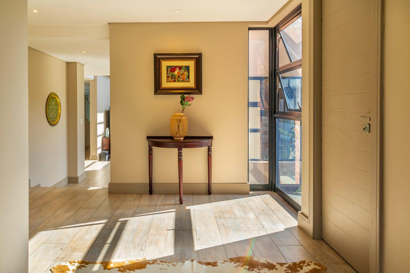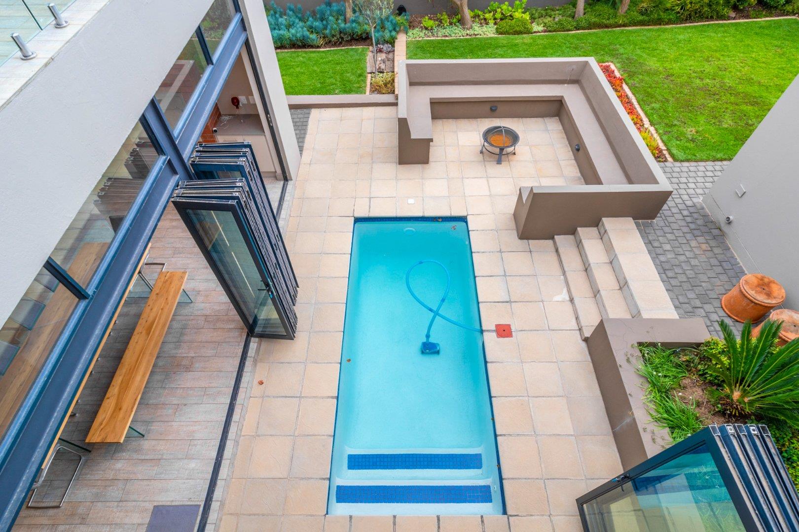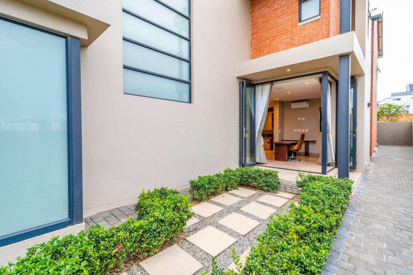 This contemporary home, built in 2019, offers 689 sqm of luxury living on a 1,097 sqm stand. The property features home automation, security cameras, intercom, fibre with server room, inverter with 3 solar panels, solar geyser, central vacuum, and central air-conditioning downstairs.