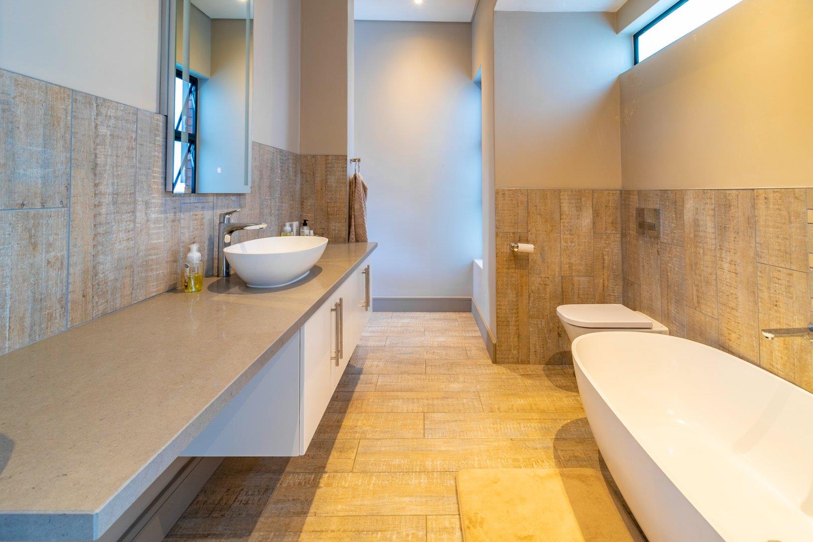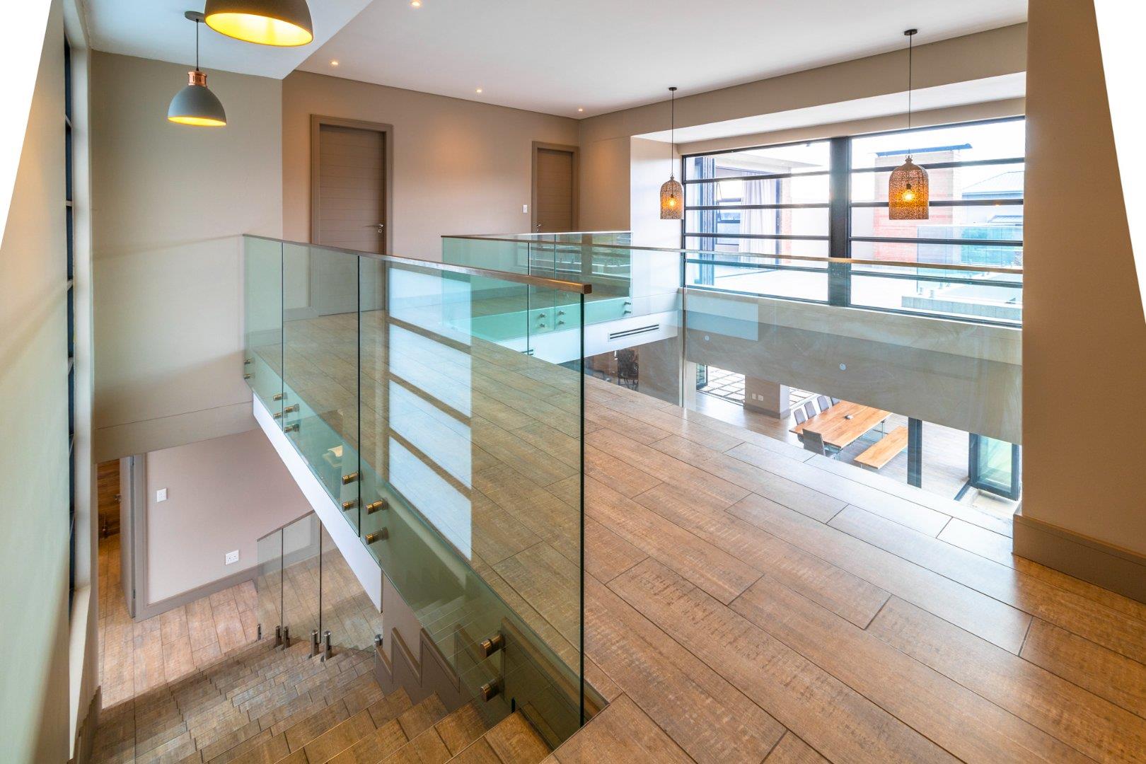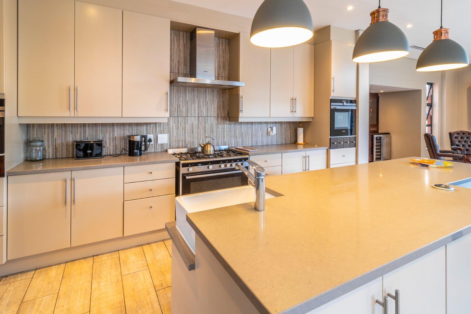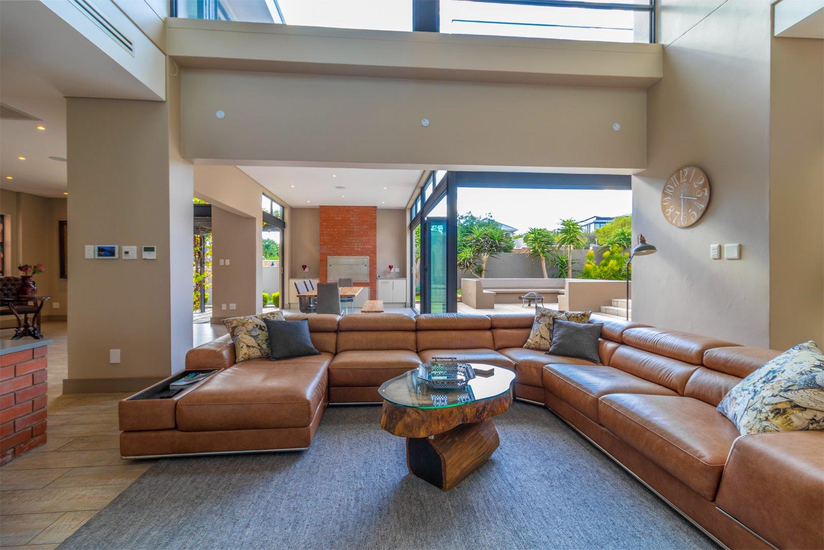 This contemporary home, built in 2019, offers 689 sqm of luxury living on a 1,097 sqm stand. The property features home automation, security cameras, intercom, fibre with server room, inverter with 3 solar panels, solar geyser, central vacuum, and central air-conditioning downstairs.