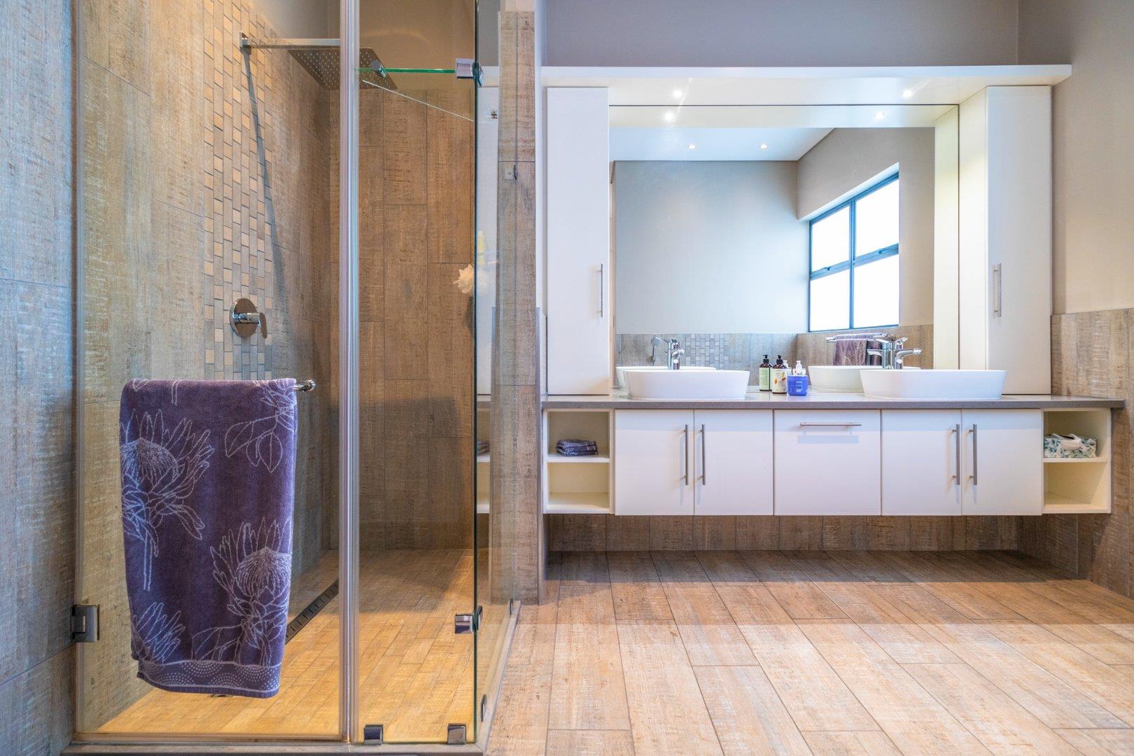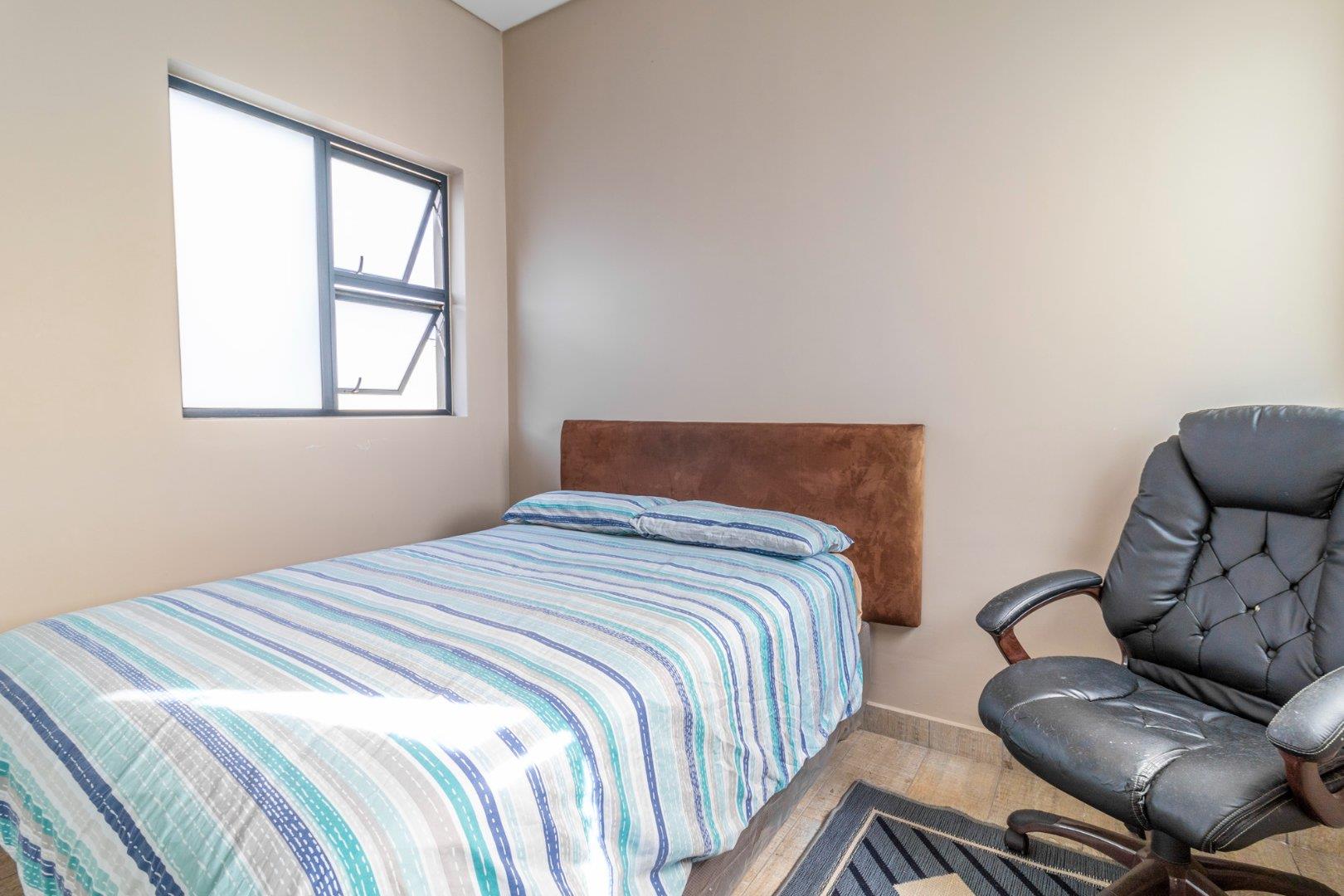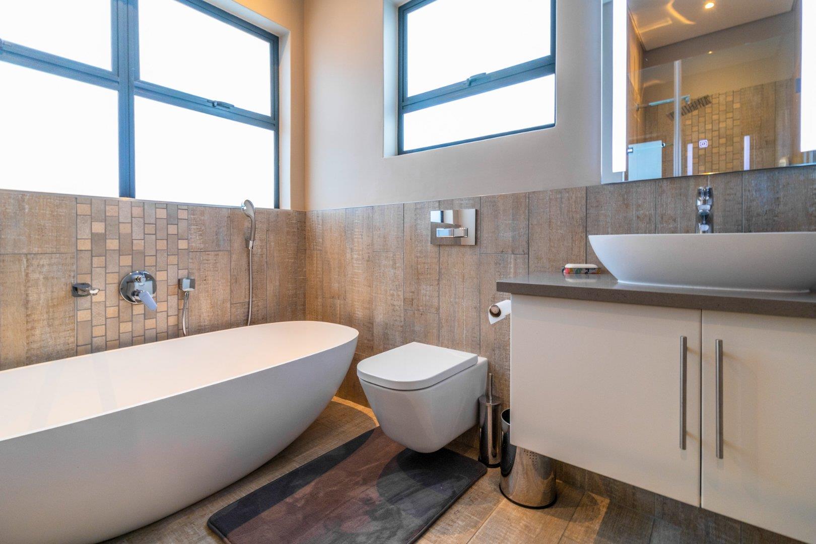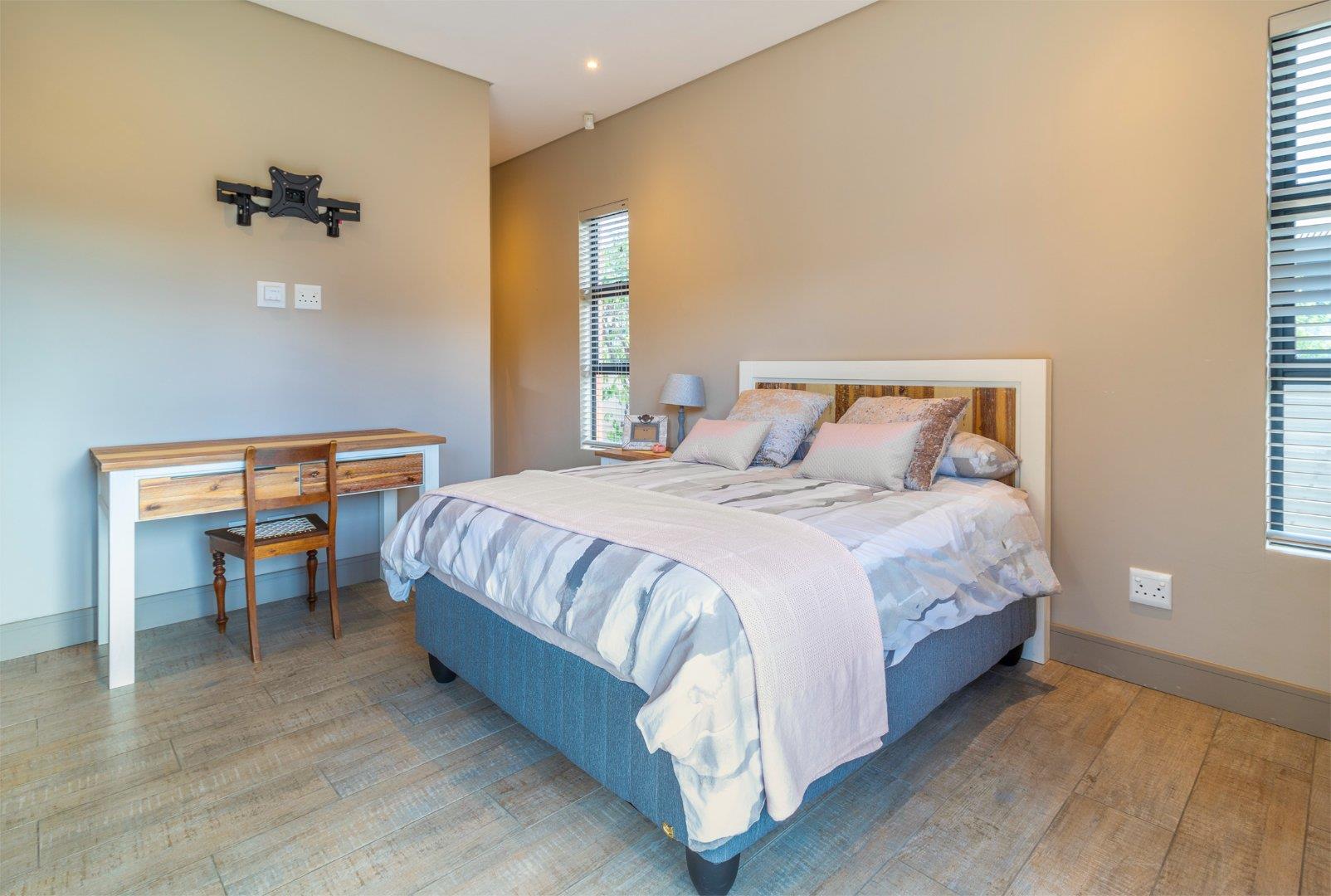 This contemporary home, built in 2019, offers 689 sqm of luxury living on a 1,097 sqm stand. The property features home automation, security cameras, intercom, fibre with server room, inverter with 3 solar panels, solar geyser, central vacuum, and central air-conditioning downstairs.