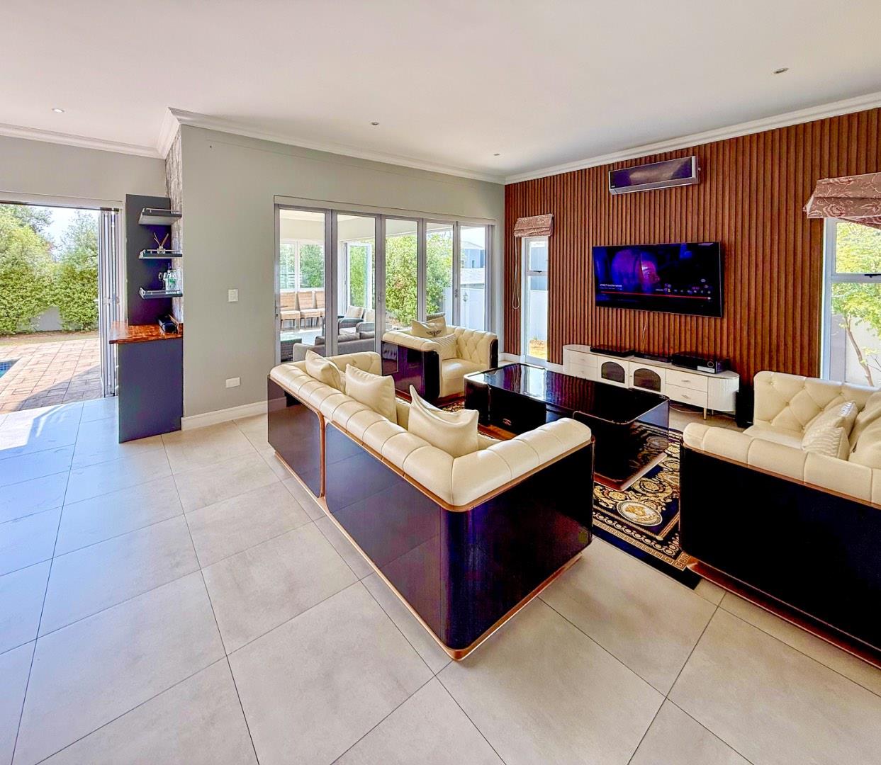 Enhancing this home's appeal are its numerous additional features: a 3-car garage, full staff accommodation, an inverter/back-up power system, air conditioning, heat pump geysers, and underfloor heating in select rooms.