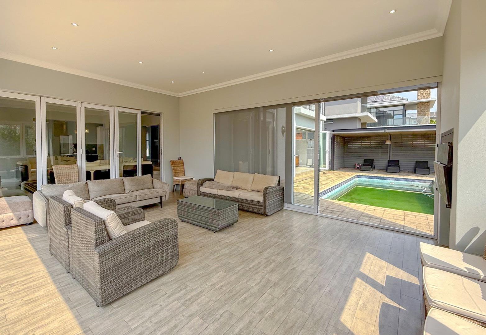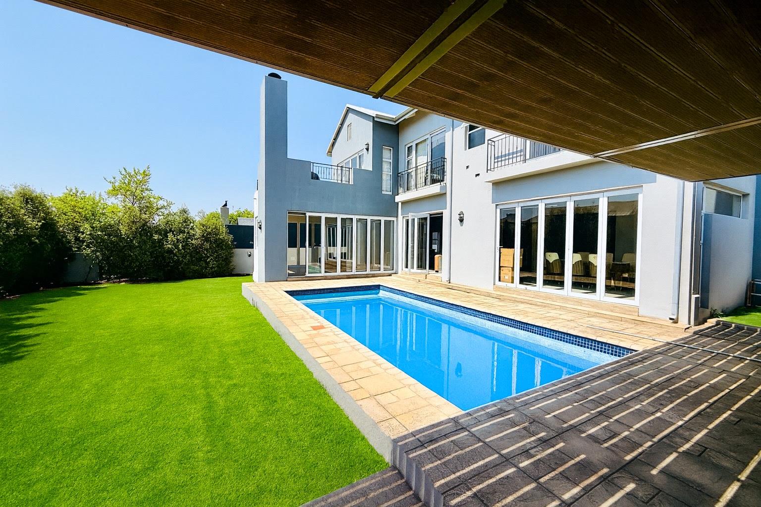 Experience the pinnacle of luxurious living in this exquisitely designed 4-bedroom, 4.5-bathroom residence, nestled within the prestigious and secure Waterfall Country Estate. This home perfectly balances comfort, privacy, and entertainment, making it an ideal sanctuary for families and social gatherings alike.