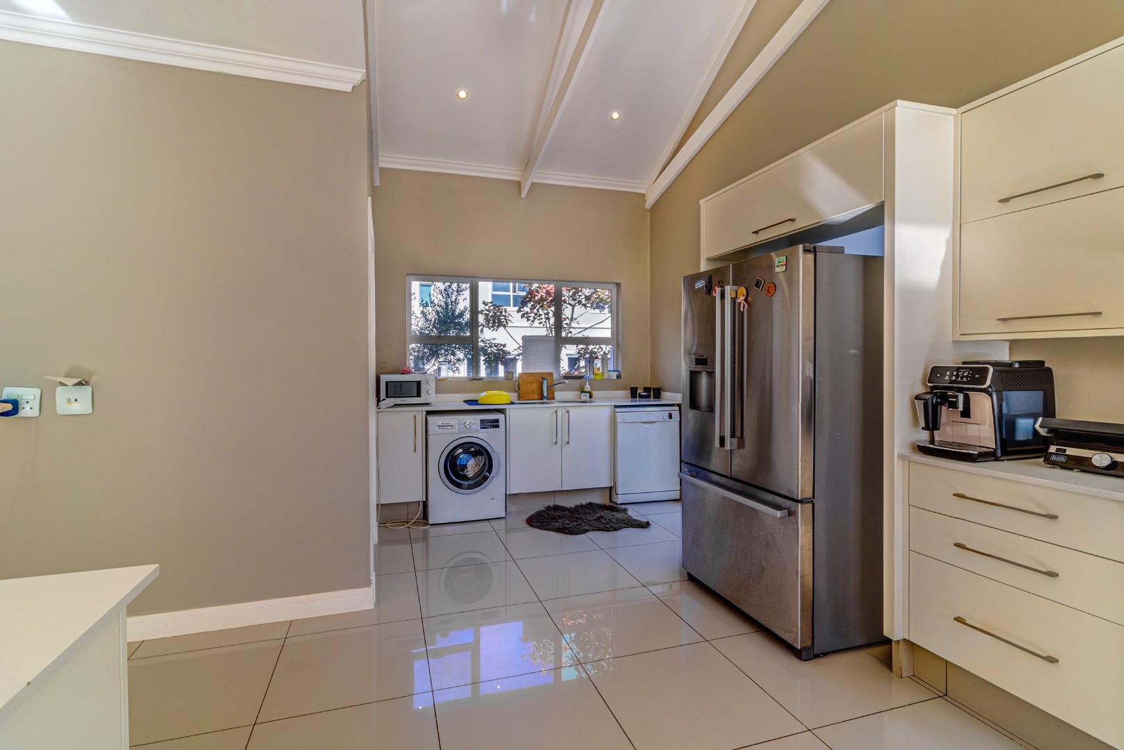 The heart of the home lies within the open plan kitchen, a culinary masterpiece that is sure to delight even the most discerning of chefs. Adorned with a premium gas stove, this kitchen is a haven where culinary creations come to life. To ensure maximum functionality and maintain an uncluttered aesthetic, a separate scullery is thoughtfully incorporated, offering an ideal space for food preparation and additional storage.