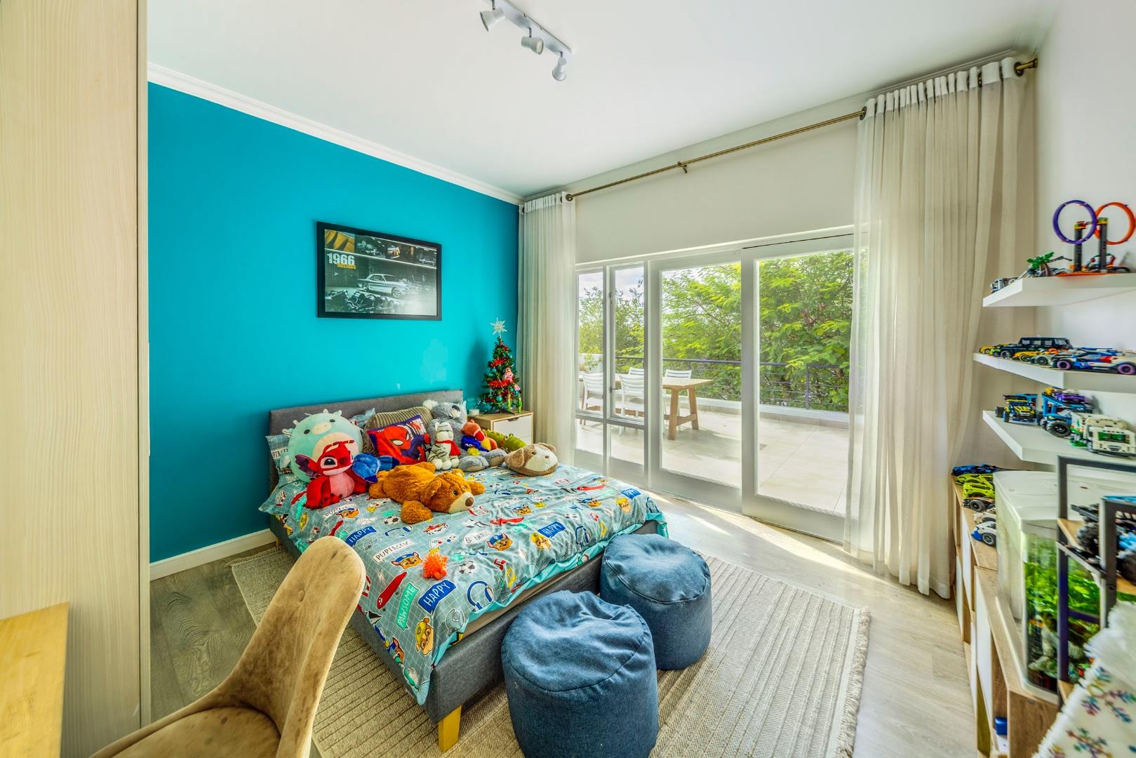 Every bedroom, along with the TV lounge, is equipped with energy-efficient inverter air conditioners. The home’s eco-friendly features extend beyond energy, with a 3,000-liter water backup system that includes full filtration and UV treatment, ensuring clean and safe water throughout the home. Two solar geysers further enhance the property’s sustainability.