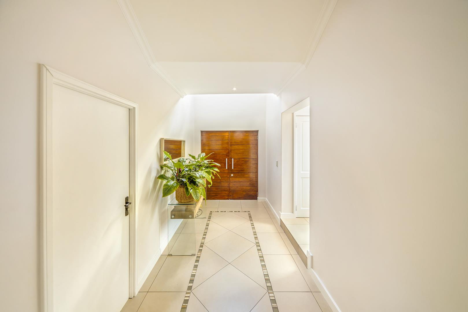 This modern and contemporary masterpiece in the prestigious Waterfall Country Village Estate is a blend of luxury, functionality, and sustainability. From the moment you step into the grand double-volume entrance, you are greeted with a sense of space and elegance. To your left, a stylish staircase ascends to the upper level, while to your right, a double garage equipped with a Tesla solar system ensures the home operates 98% off-grid, highlighting its eco-conscious design.