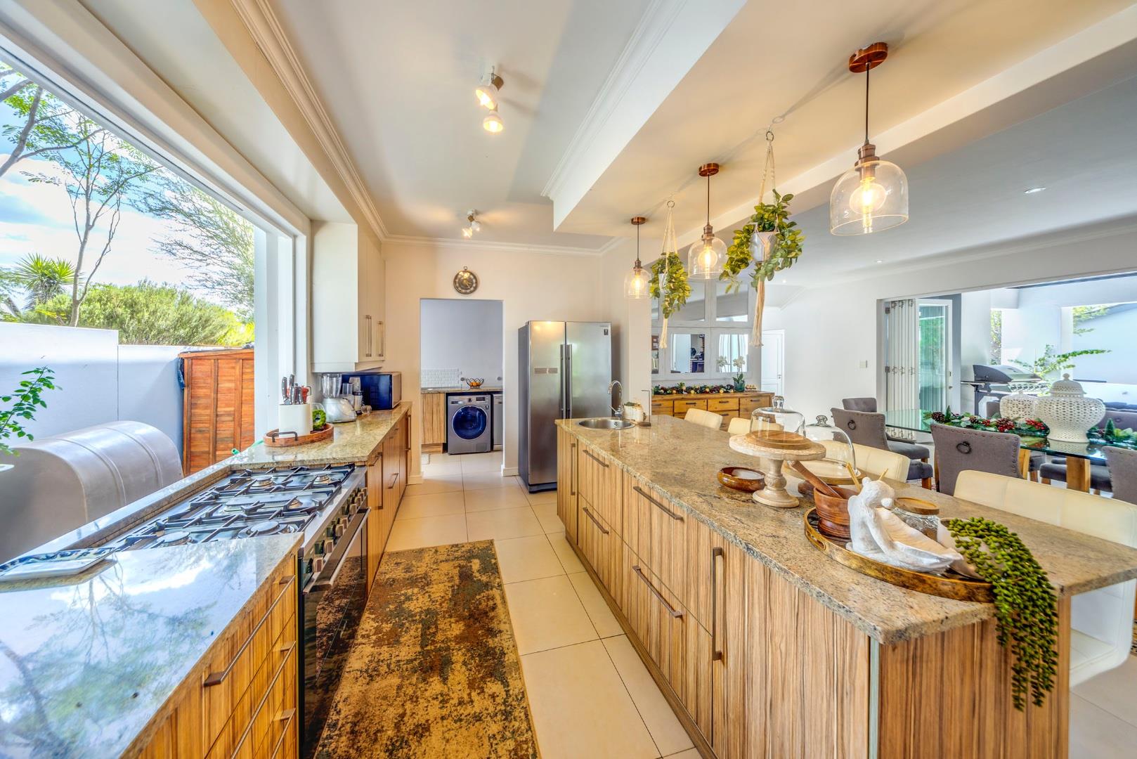 The open-plan layout on the ground floor is designed for seamless living and entertaining. The dining area flows effortlessly into a state-of-the-art kitchen, which boasts a unique feature, a large stacking window that opens completely, inviting light and fresh air into the space and the kitchen has a seperate scullery.
