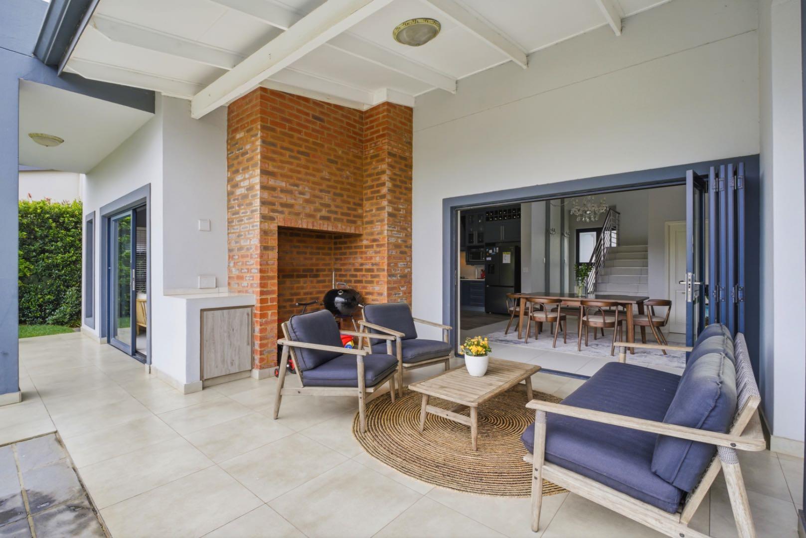 Stack doors from the covered patio open onto a landscaped garden, sparkling pool, and a charming boma area, the perfect setting for relaxed weekends, family gatherings, and sunset evenings around the fire.