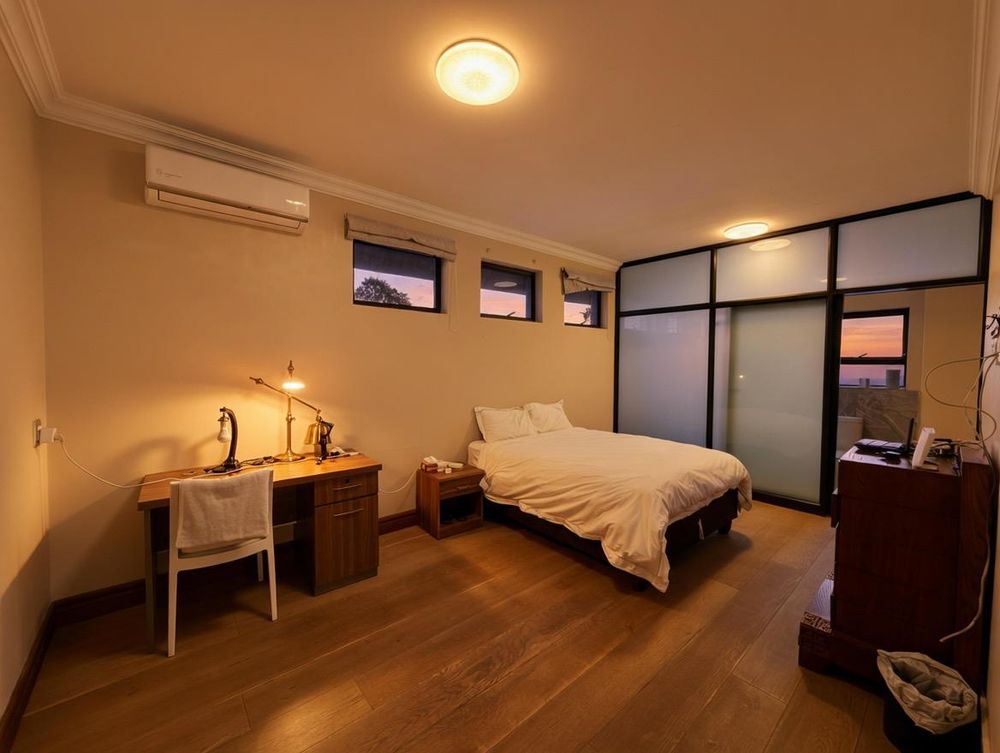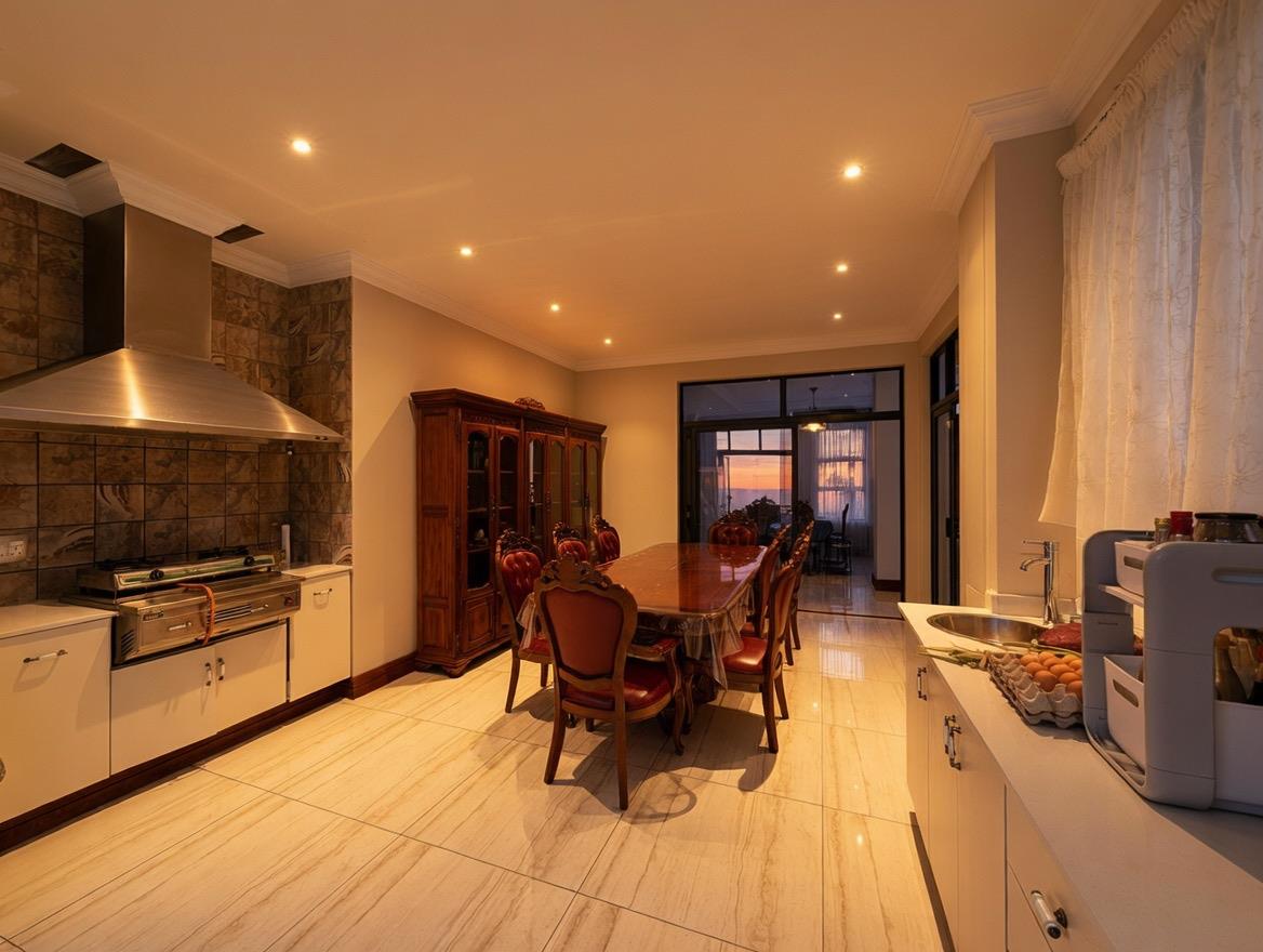 To the right of the entrance, an enclosed covered patio creates the ideal indoor-outdoor entertainment area. Fully closable from both sides and fitted with a gas braai, it’s perfect for year-round entertaining.