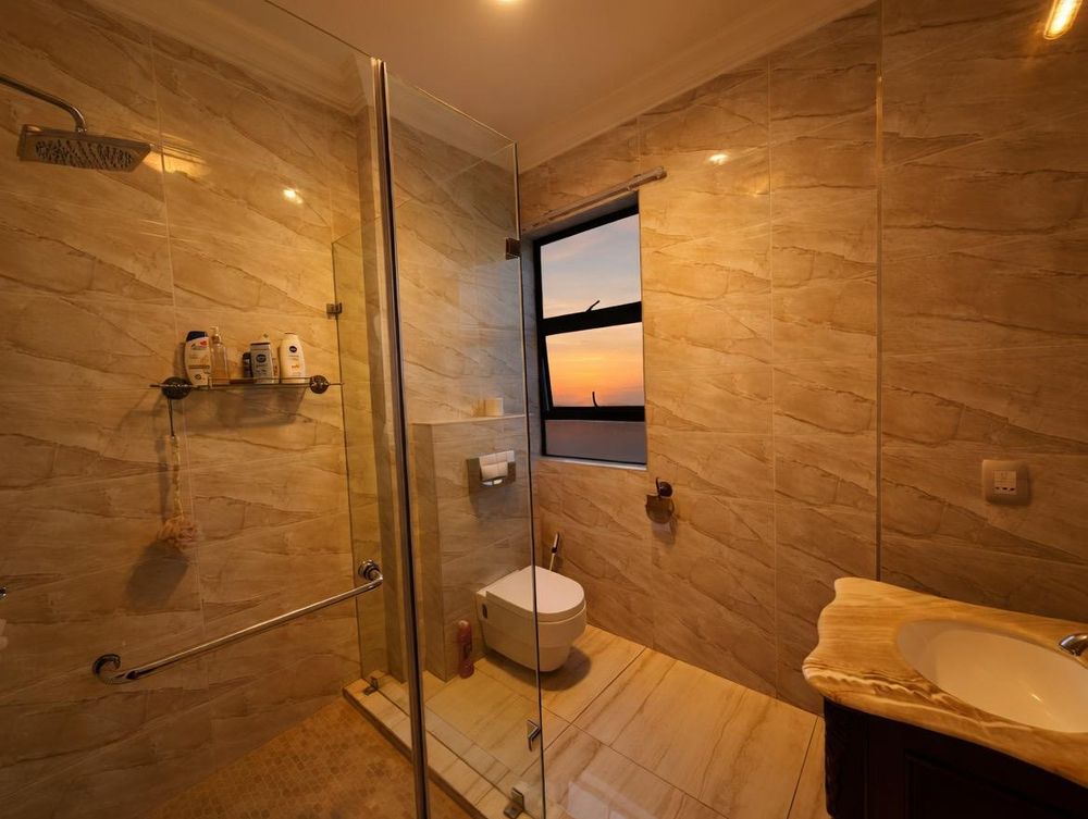 Downstairs also features a well-sized guest bedroom with access to its own covered patio, serviced by a nearby bathroom with a shower, ideal for visitors or extended family.