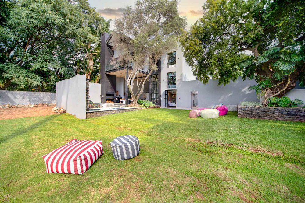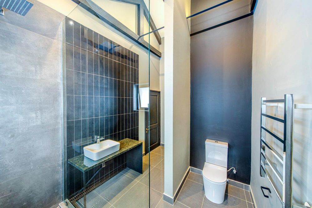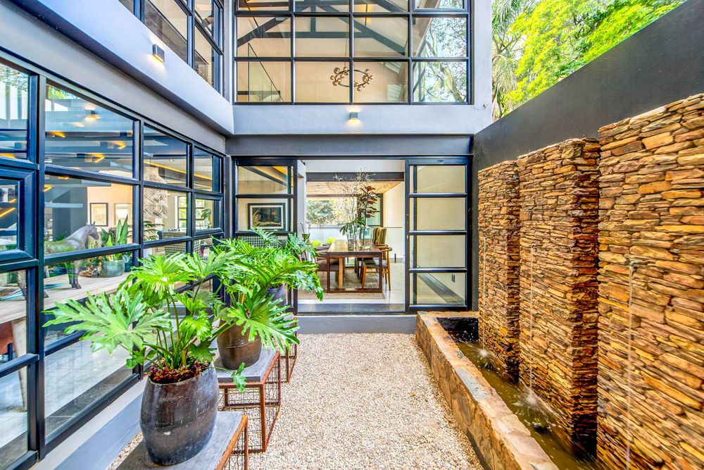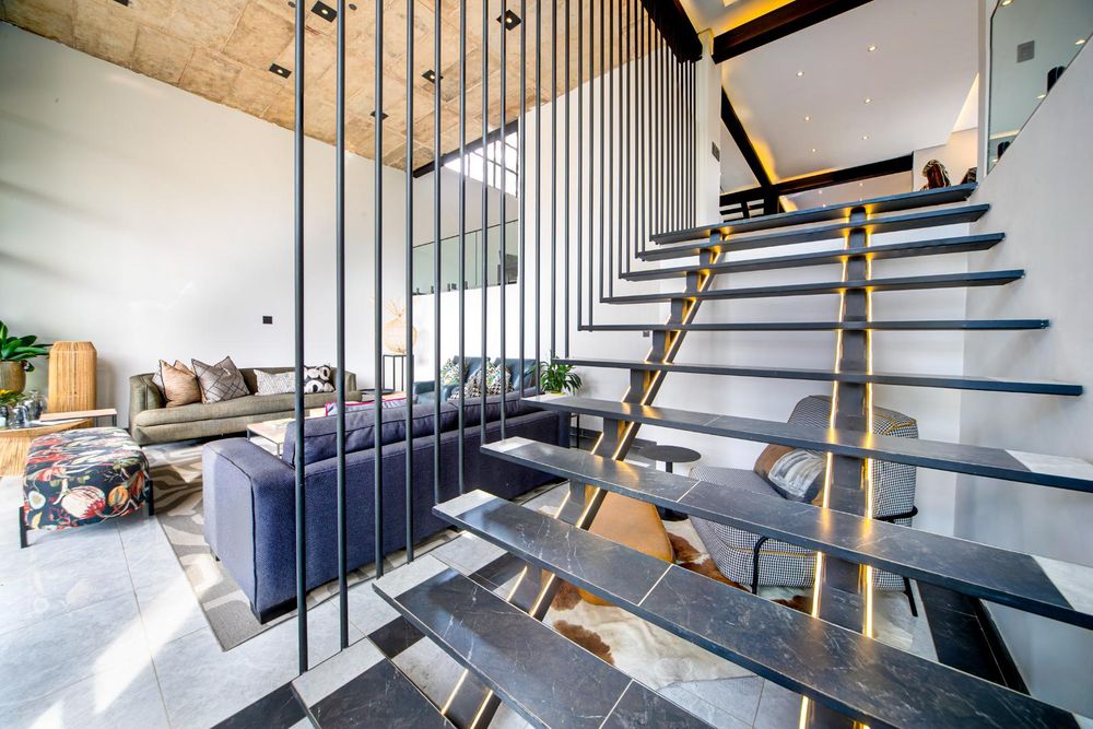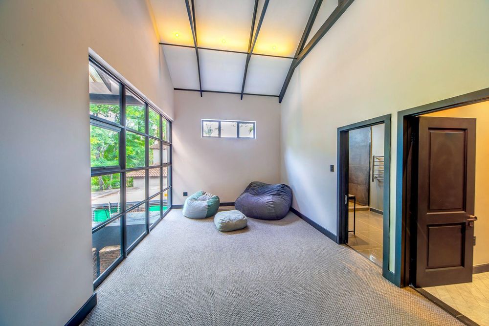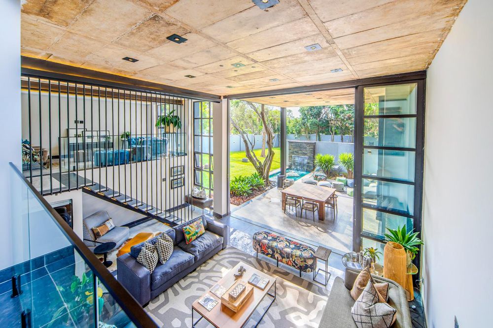 The garden level offers a beautiful double-volume lounge area, patio, braai, guest bedroom, en suite and an expansive garden with pool.