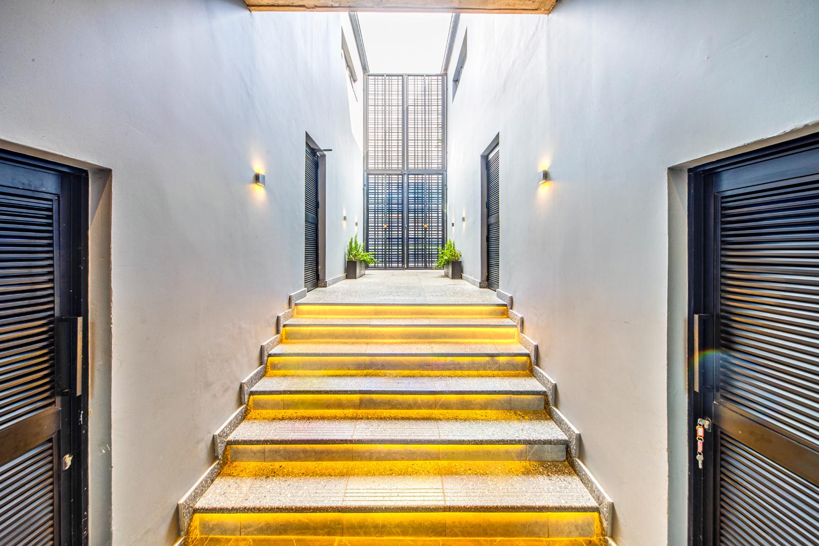 Step through the grand entrance, where sleek lines and minimalist design beckon residents and guests alike. Floor-to-ceiling windows flood the interiors with natural light, offering panoramic views of lush greenery.