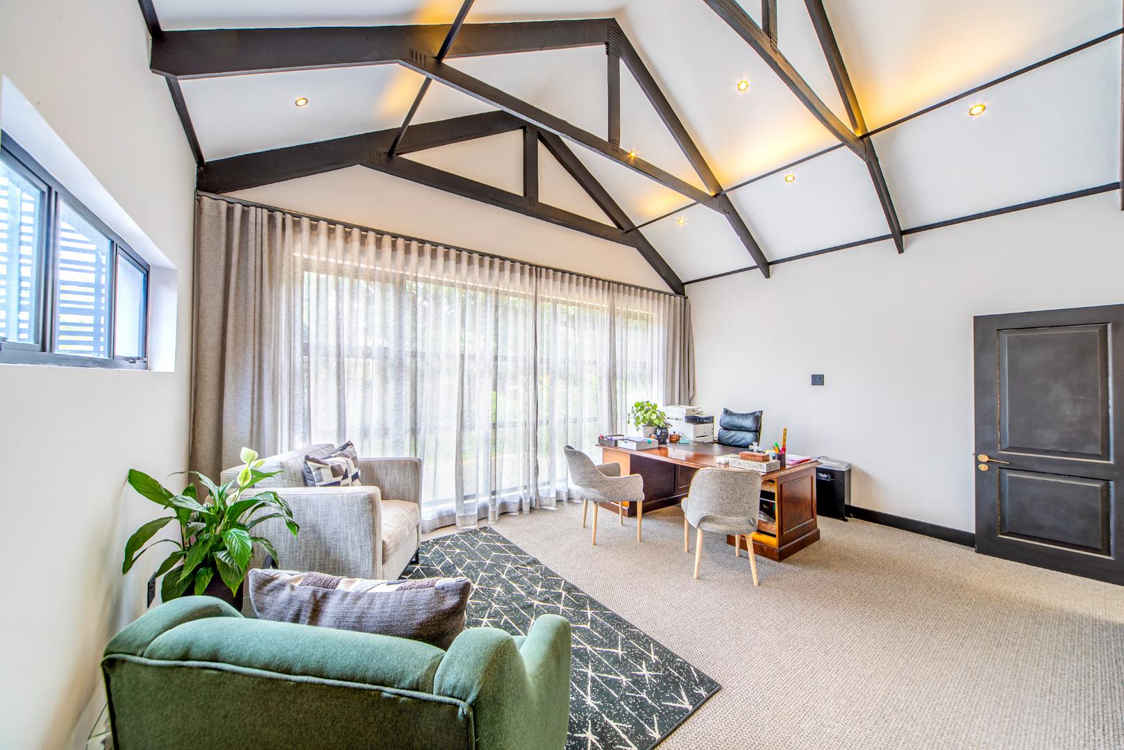 Additional features include a home office or studio, two double garages, and staff accommodations.