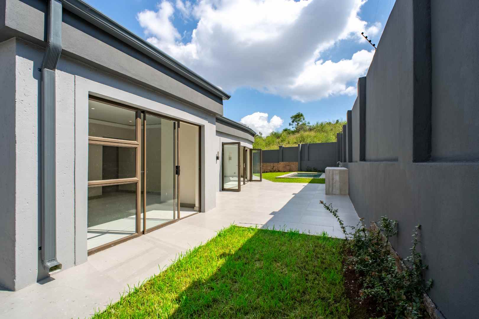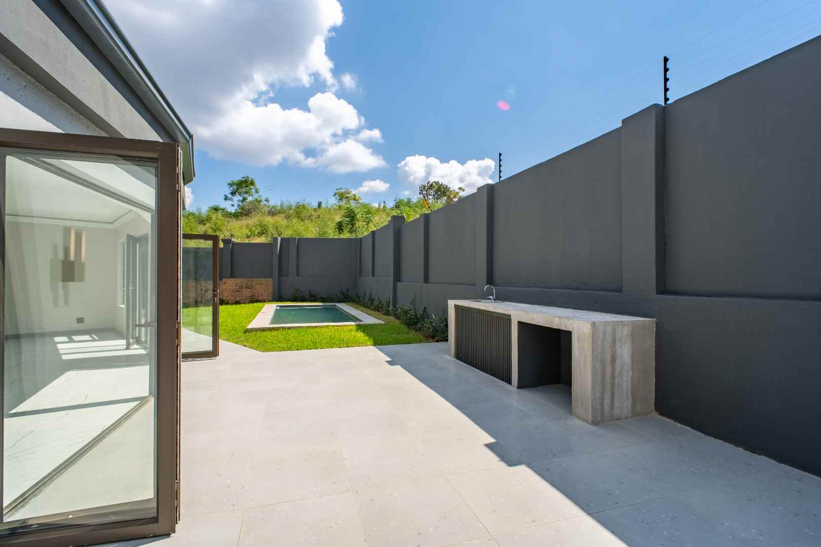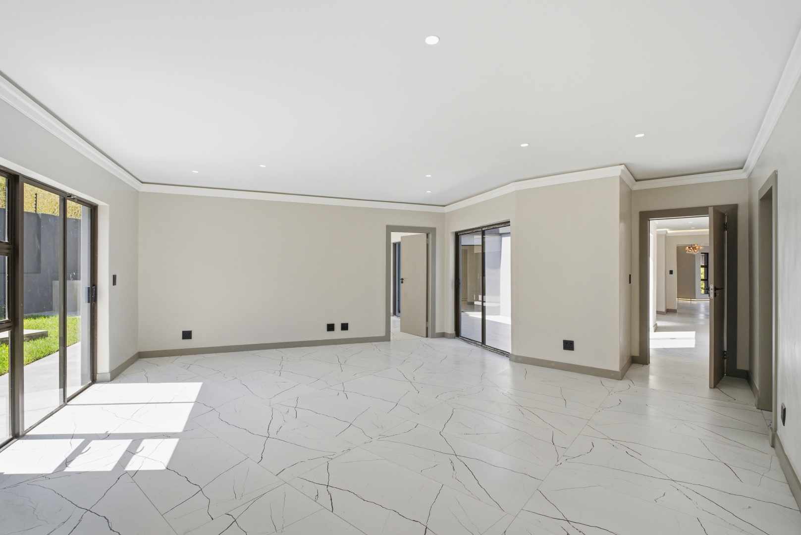 * Floor-to-ceiling glass doors that blur the line between indoor and outdoor living