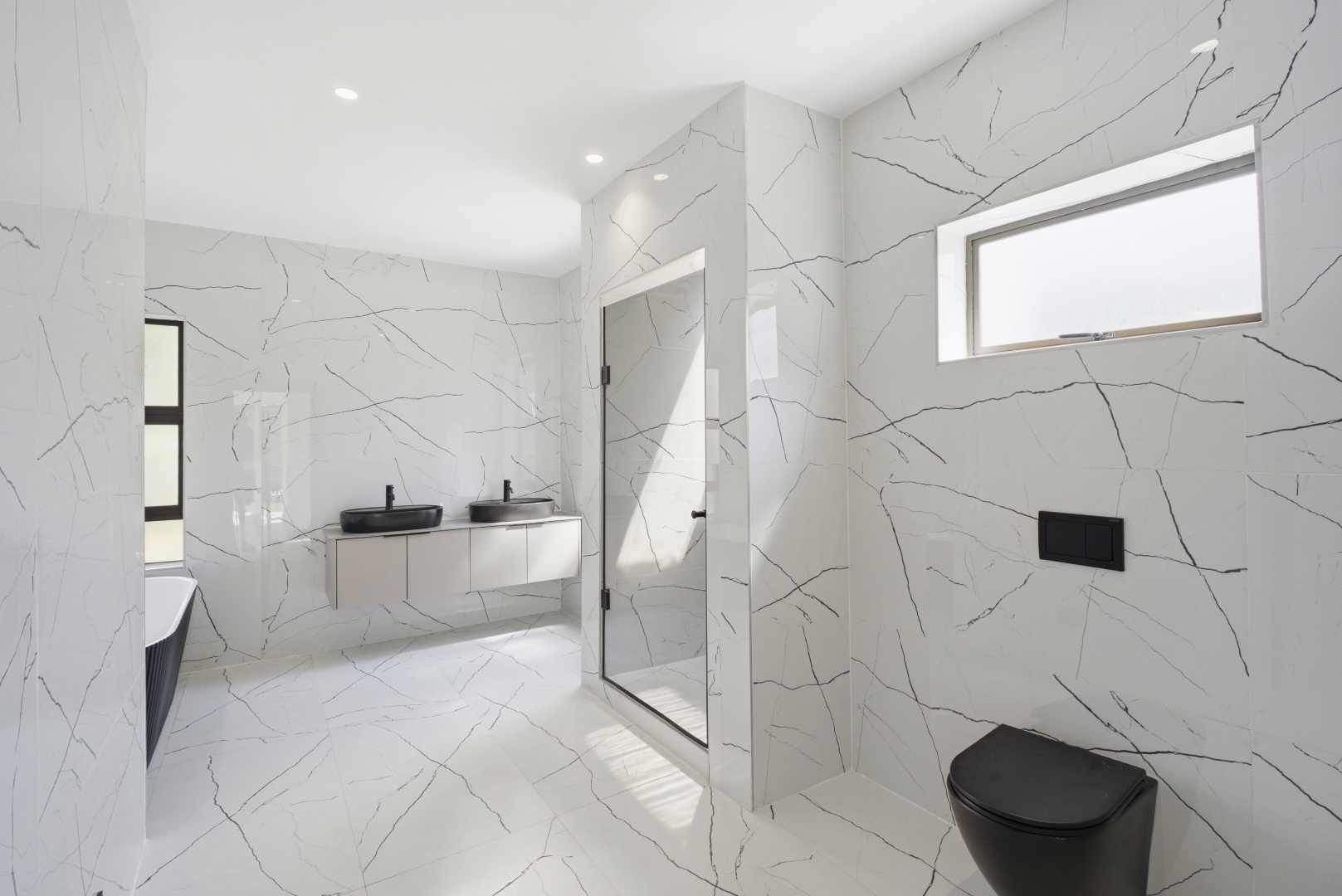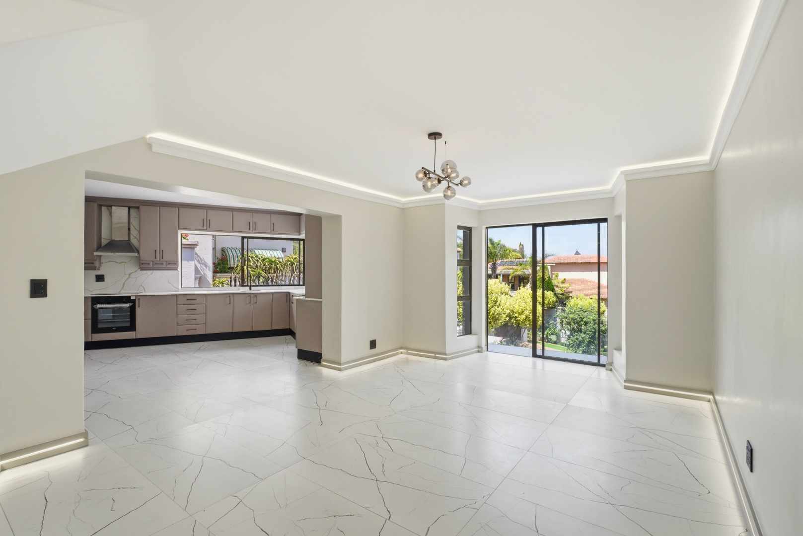 The heart of the home is the breathtaking open-plan living and entertainment space featuring a large kitchen with modern cabinetry, premium finishes and abundant natural light. New tiling, elegant lighting and sophisticated black accents create a fresh, contemporary aesthetic throughout.